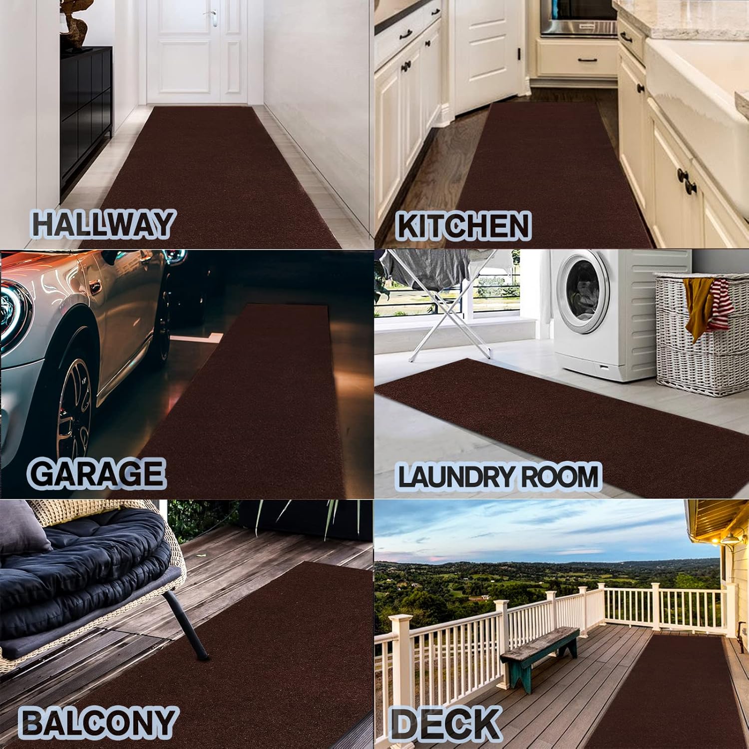Custom Size Backed Non-Slip Area Rugs Runner, Easy Clean, Waterproof Runner Rugs for Hallway Entryway, Kitchen, Laundry, 2FT x 72FT, Brown