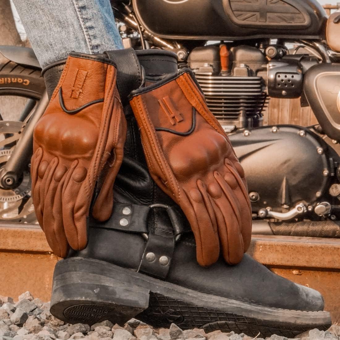 - [Comfortable and Premium durable Leather ]:The leather motorcycle gloves is made of the soft goatskin leather.