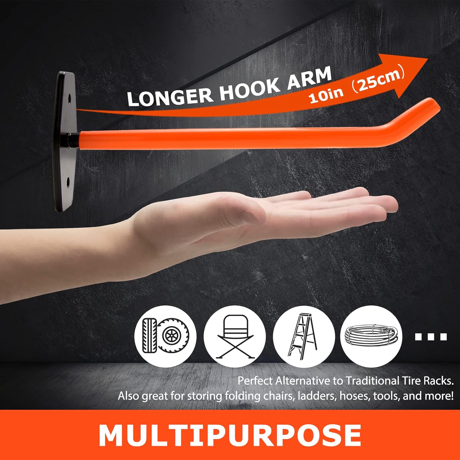 4 PCS Garage Hooks Heavy Duty Wall Mount, Tire Storage System with Anti-Slip Coating, Hang Heavy Tools for up to 88Lbs, for Bikes, Ladders, Chairs and Bulky Tools