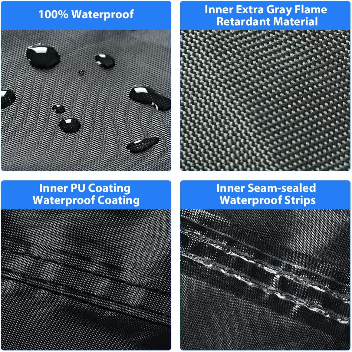 - Motorcycle Cover Outdoor: Made of 150D heavy-density oxford, durable, easy to clean, Good air permeability. 1. PU coating is waterproof and tearproof, it's great for rainproof snowproof. 2. The interior is made of upgraded flame-retardant fabric, which can prevent fire and anti-static. 3. The inner waterproof seam sealing tape can protect your motor from rain, 100% waterproof.