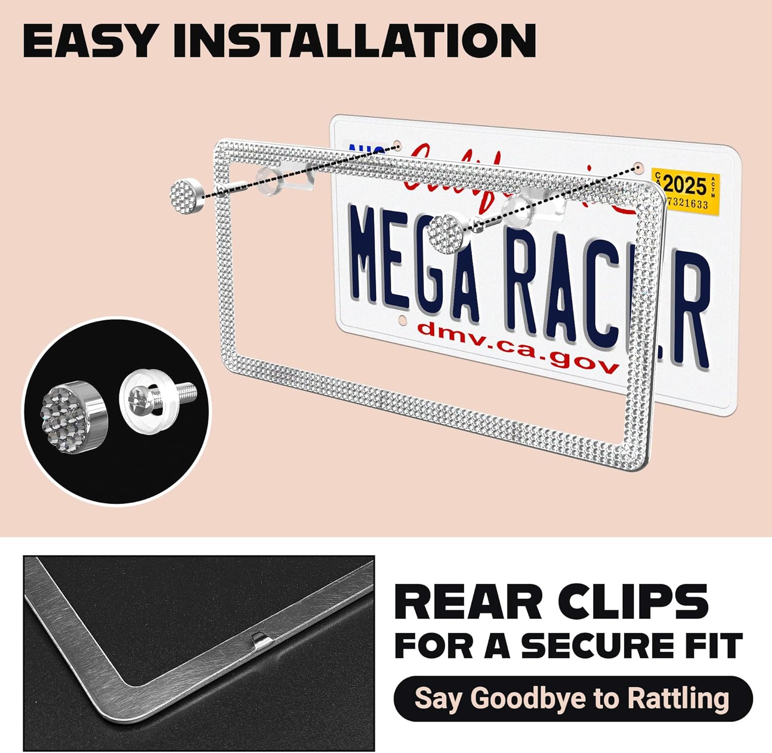 - Slim Thin Edge Design: Add sparkle without hiding your tags! The sleek thin-edge design perfectly fits US standard plates, keeping your tags fully visible and your ride stylish.