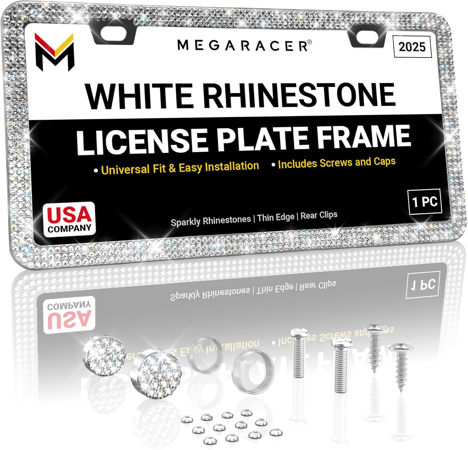 - Glitter Bling Rhinestone License Plate Frame for Women: Add a girly, glittery touch to your ride with this stunning 1-pack thatâs made to shine.