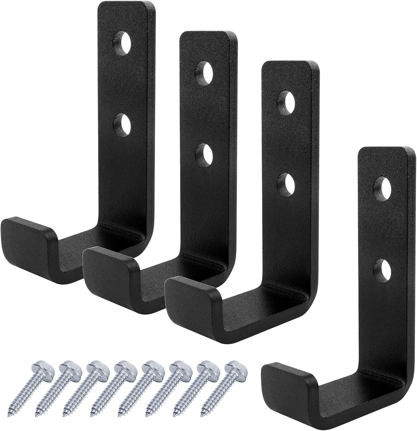 4 Pack 3-1/2" Heavy Duty Steel J Hook, Wall Mount Utility Hook for Hanging Home Gym Garage Storage, Black