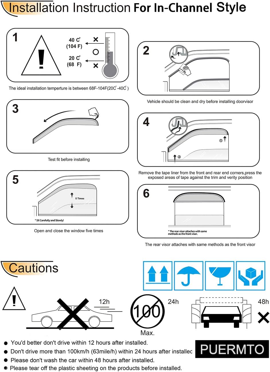 - EASY INSTALLATION: Our Window Visors mounting with tape for extra-strong grip, no drilling is needed ,and no disturbed in the windows up and down.