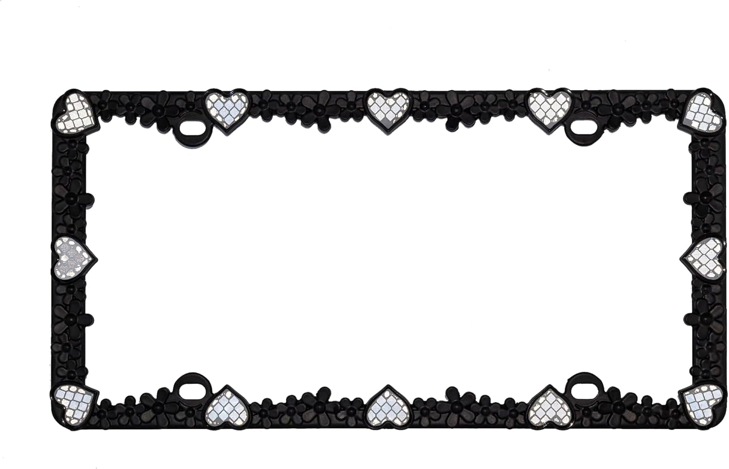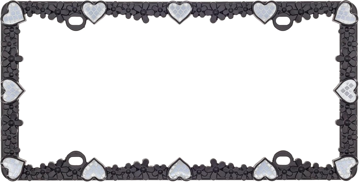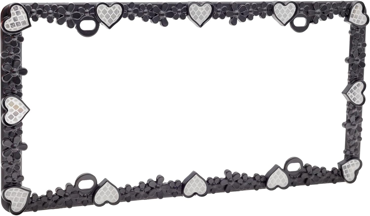 - Flower heart license plate frame, small daisy, love, beautiful, complete, reflective, safe, universal standard license plate with two and four holes