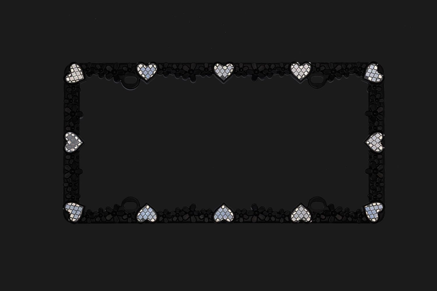 Creathome 3D Daisy Heart License Plate Frame from Pure Zinc Alloy Metal Perfect Plate Holder, Matt Black Daisy with Silver Reflective Heart