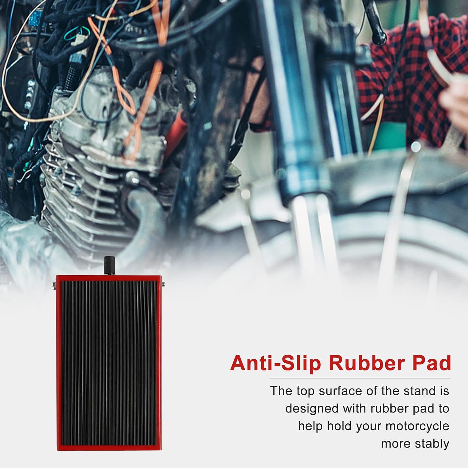 - 【Thoughtful Anti-Slip Design】The top is equipped with an anti-slip rubber pad, which can firmly support the motorcycle, ensure the safe operation process, and avoid scratching the body and protect the appearance of the vehicle.