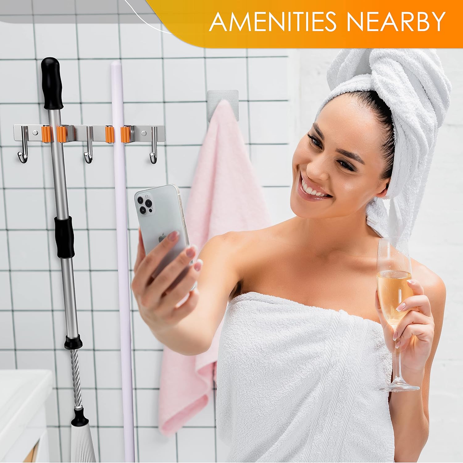 - ✅ [Premium Stainless Steel – Long-Lasting & Rustproof] Crafted from SUS304 stainless steel, this mop and broom holder resists rust, corrosion, and water damage. It’s ideal for wet or humid environments like bathrooms, kitchens, or outdoor sheds.
