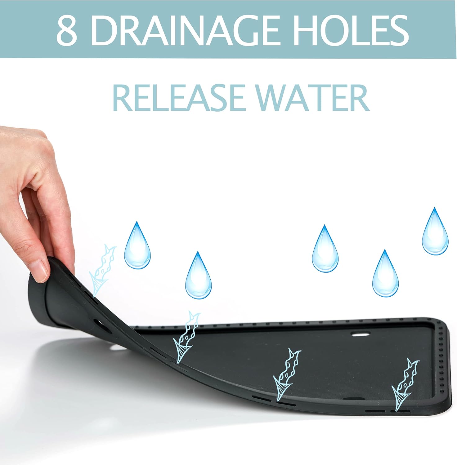 - Humanized design: Our automotive license plate frames have 8 drainage holes to release water. And allow rain, ice, and snow to easily seep out, ensuring your plates stay rust and tarnish free.