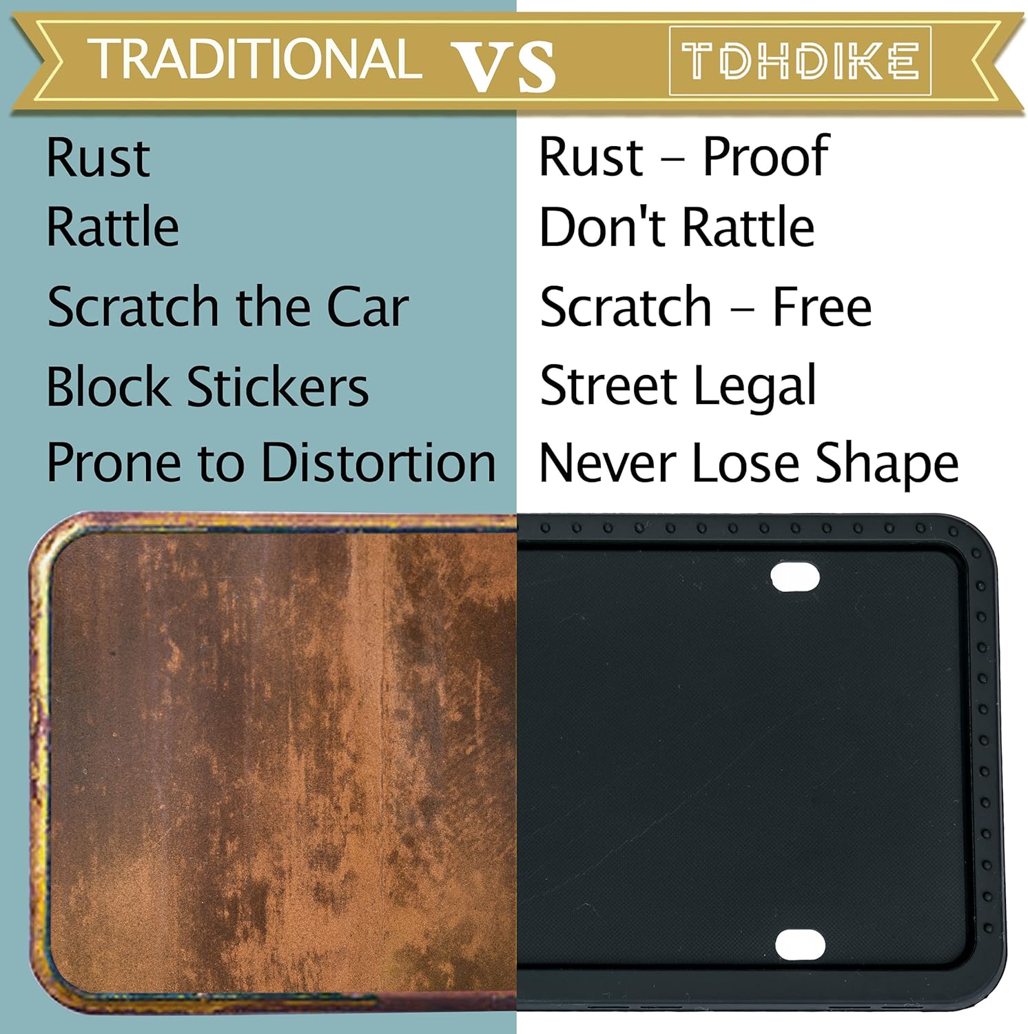 - Silicone Car Accessories: The universal license plate frame is made of HIGH-QUALITY SILICONE MATERIAL, which protect license plate from rusting and damaging and is more durable than plastic frame. These lisences plate frame will not rust even if it is exposed all year round to wind and rain.