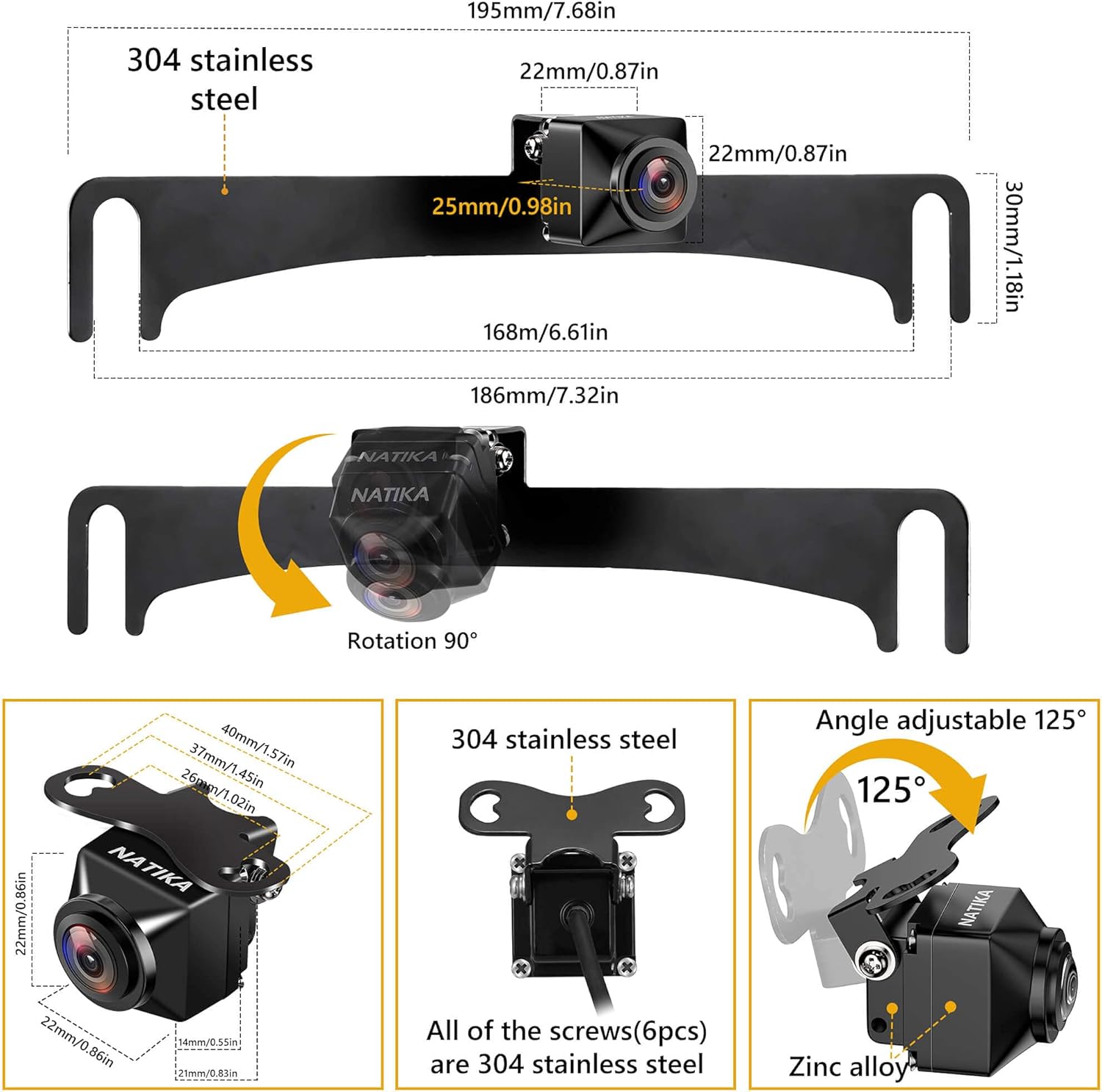 NATIKA Backup/Front View Camera: No Distorted Affect Starlight Night Vision HD Waterproof 720P AHD and TVI Hitch Backup/Reverse/Rear View Camera License Plate for Cars Pickup Trucks SUV RV Van