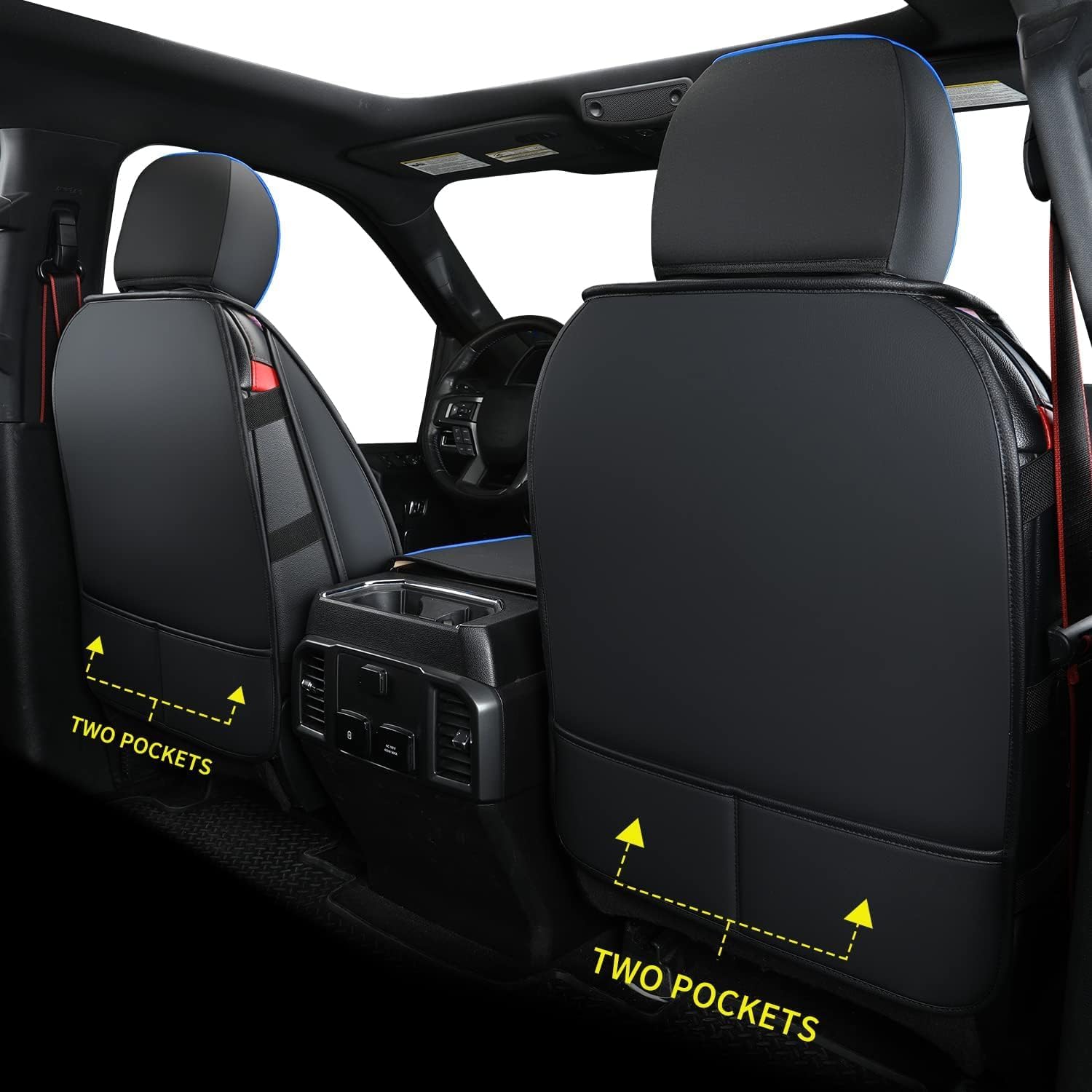 LUCKYMAN CLUB F150 Faux Leather Seat Covers Fit for 2015-2024 2025 F150 SuperCrew and 2017-2024 2025 F250 F350 F450 Super Duty Crew Cab Pickup Trucks(Full Set, Black&Blue)
