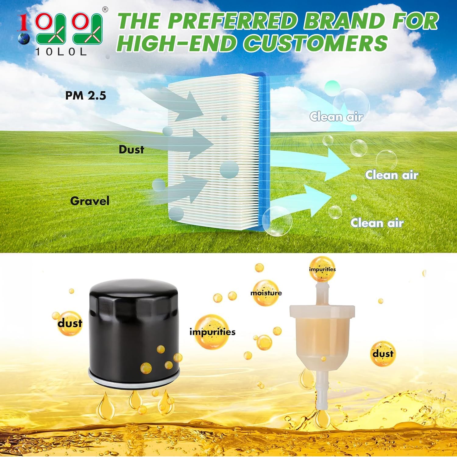 - Package Include:1 x Air Filter, 2 x Fuel Filters,1 x Oil Filter, 1 x Spark Plug,1 x Clutch Drive Belt, 1 x Generator Belt.