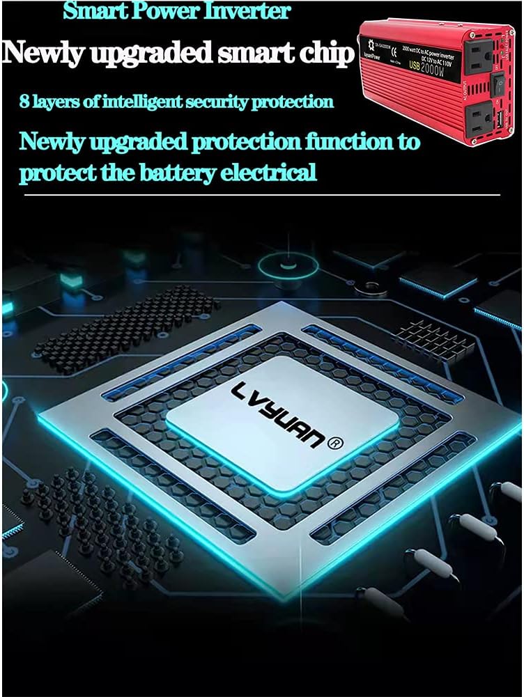 - 1.Powerful features :2000W Power Inverter (900 watts continuous power, 2000 watts peak power) DC 12V to 110-120V AC Car Inverter with 4.2A USB Car Adapte,featuring 2 AC outlets and 1 USB ports perfect for vacations, work trips, and camping or anywhere there is power failure