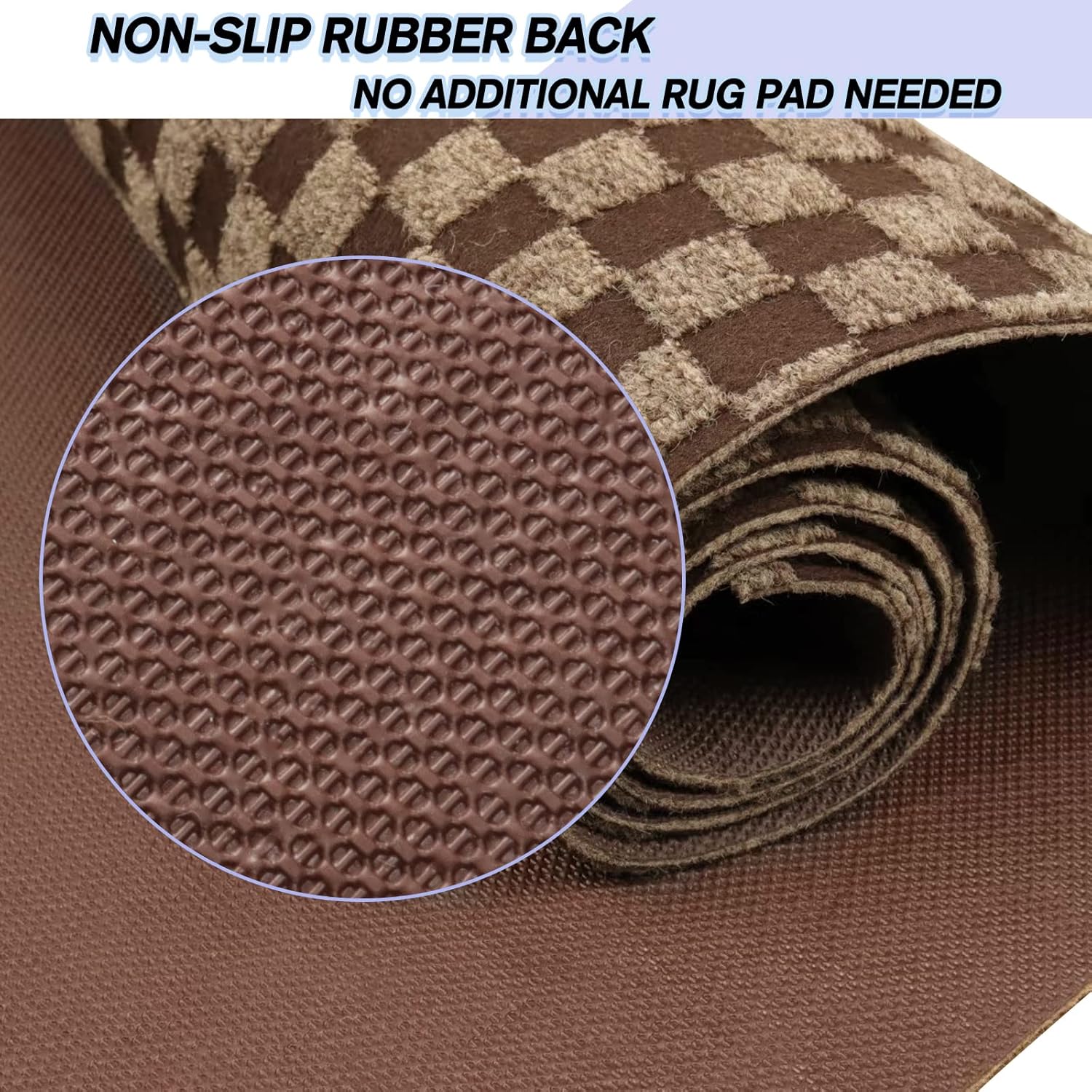 Custom Size Backed Non-Slip Area Rugs Runner, Easy Clean, Waterproof Runner Rugs for Hallway Entryway, Kitchen, Laundry, 3FT x 21FT, Brown Checkered