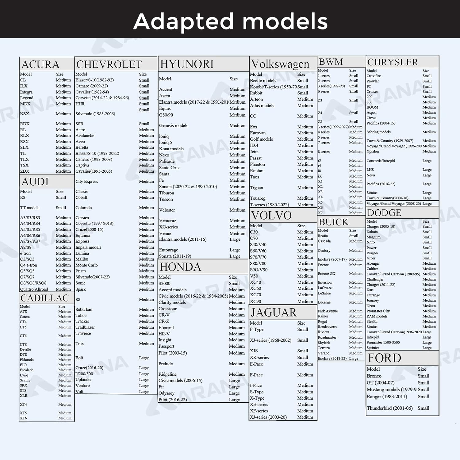 - ARANA Promise: With 180 days of product support, ARANA ensures a perfect fit for your vehicle. Use the size chart to choose the right one, and don't hesitate to reach out for any questions, let's make this summer hassle-free