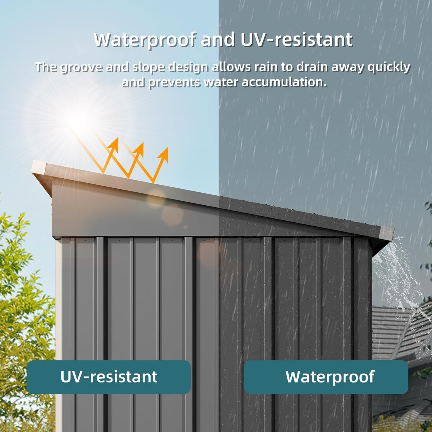 - 【Multifunctional Outdoor Storage Shed】This metal shed is more than just storage—it’s a versatile addition to your outdoor space. Use it to store gardening tools, power equipment, bikes, or even as a pet shelter that stays cool and comfortable in warm weather. It can also serve as a tidy garbage station to keep waste out of sight.