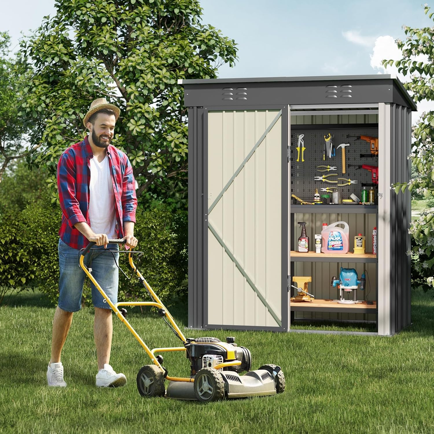 Bealife 5' x 3' Outdoor Storage Shed Clearance, Metal Outdoor Storage Cabinet with Single Lockable Door, Waterproof Tool Shed, Backyard Shed for Garden, Patio and Lawn(Grey)