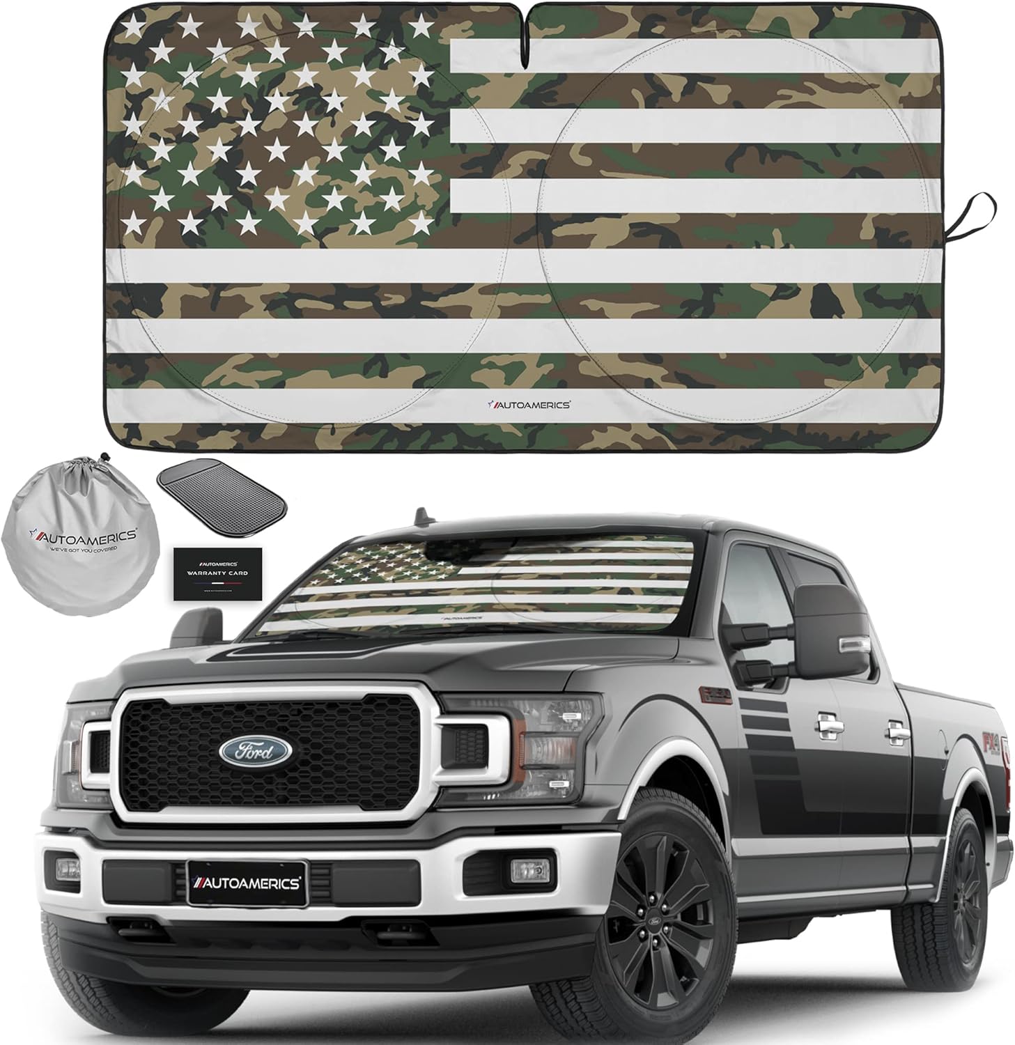 - Market-leading sun protection with an eye-catching American flag design. The new Autoamerics 1 piece USA windshield sunshades combines unbeatable sun reflecting and heat blocking capabilities. We achieve our market-leading protective performance by combining the finest reflective materials and innovative design to reflect the most scorching hot UV rays and heat.