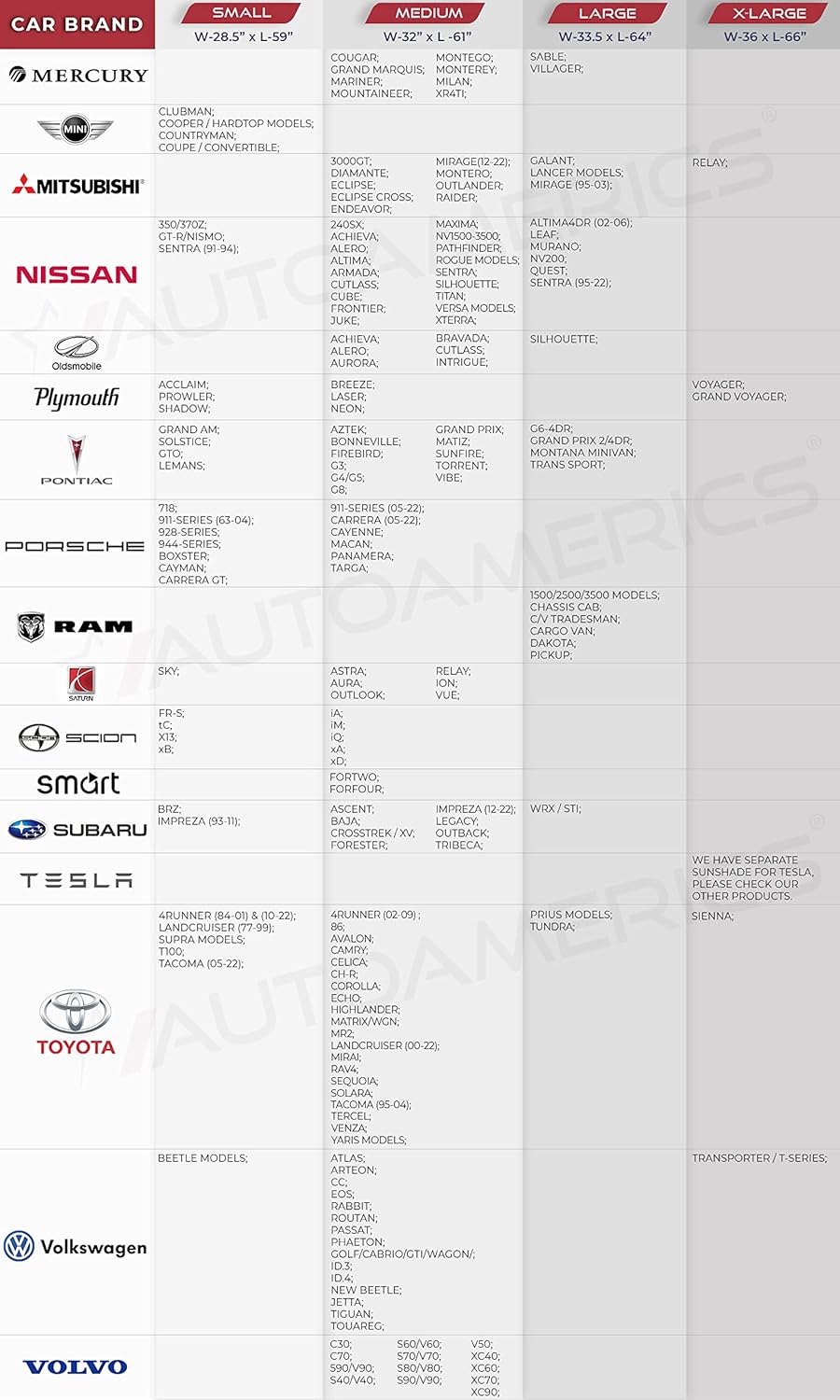 - High-quality appearance: Autoamerics Shades are premium quality with improved high-density UV reflective material, reinforced with high-strength ductile wire and the latest heat reduction technology. Our sunshades are among the most innovative and effective sunshade solutions available on the market today!