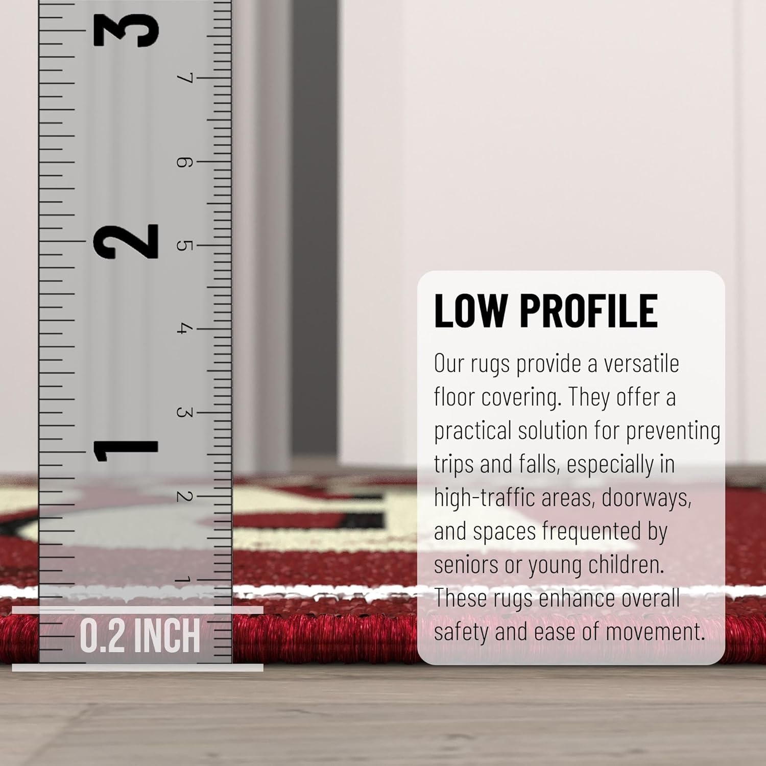 • [ULTRA THIN]: An ultra thin pile thickness of 0.2 inches offers ideal functionality that is perfect for busy areas, underneath furniture, and in entryways as it will not obstruct doorways.