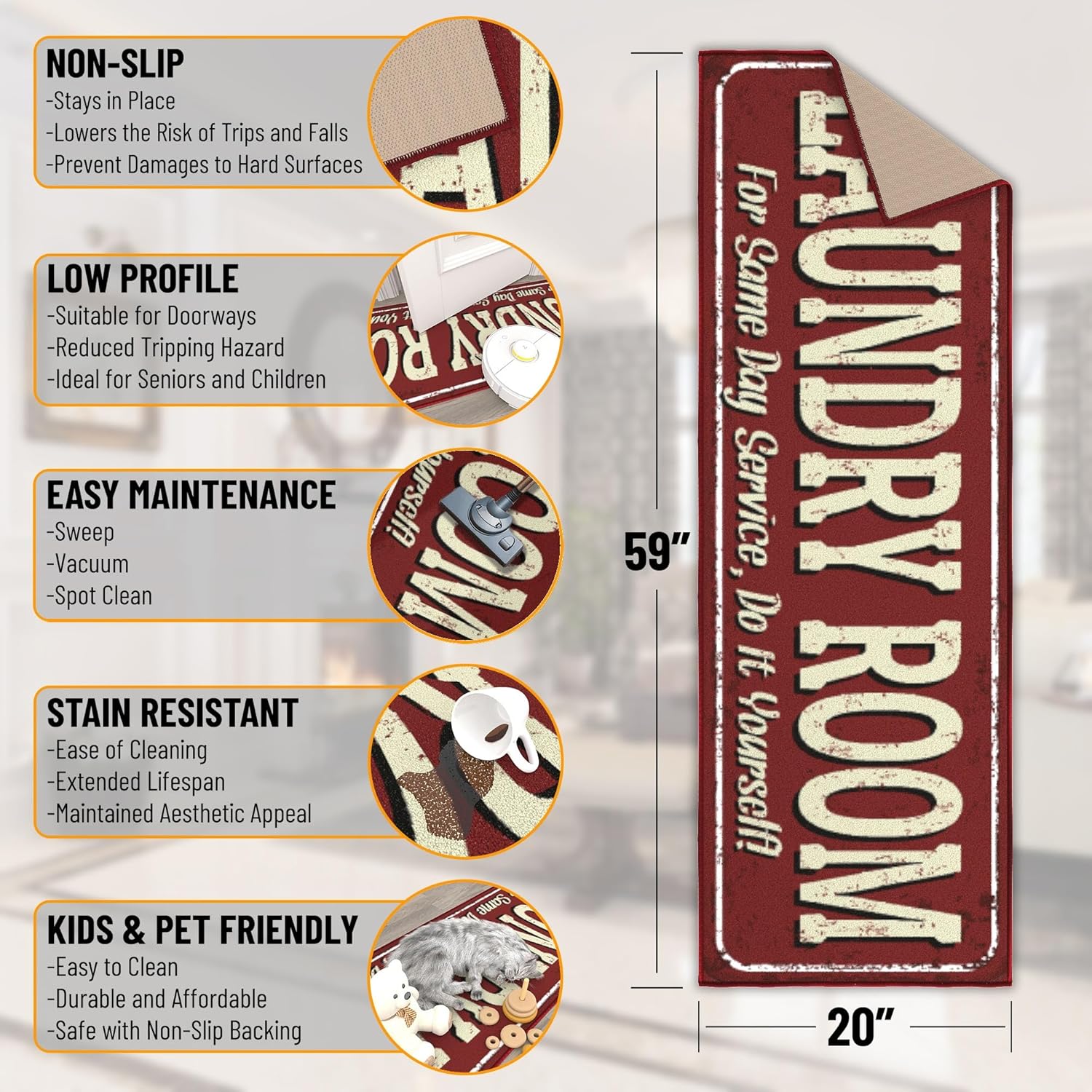 • [RECOMMENDED ROOM]: This rug will add the finishing touches to laundry room and bathroom.