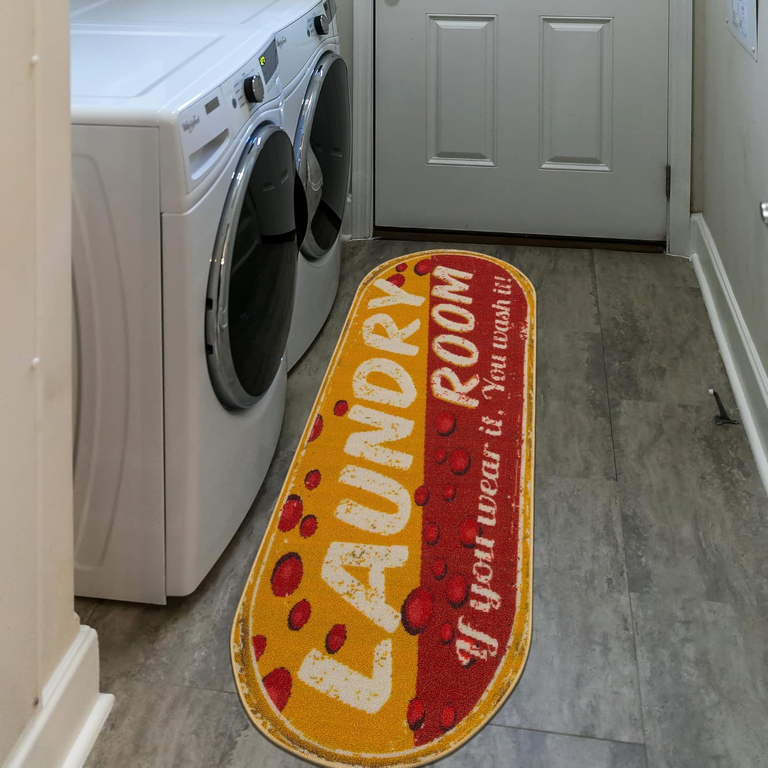 Ottomanson 20" x 59" Oval Laundry Room Rug - Non-Slip Mat for Laundry & Mudroom - Durable, Stain-Resistant, and Easy to Clean - Perfect for High-Traffic Areas - Runner Rug for Entryway, Yellow/Red