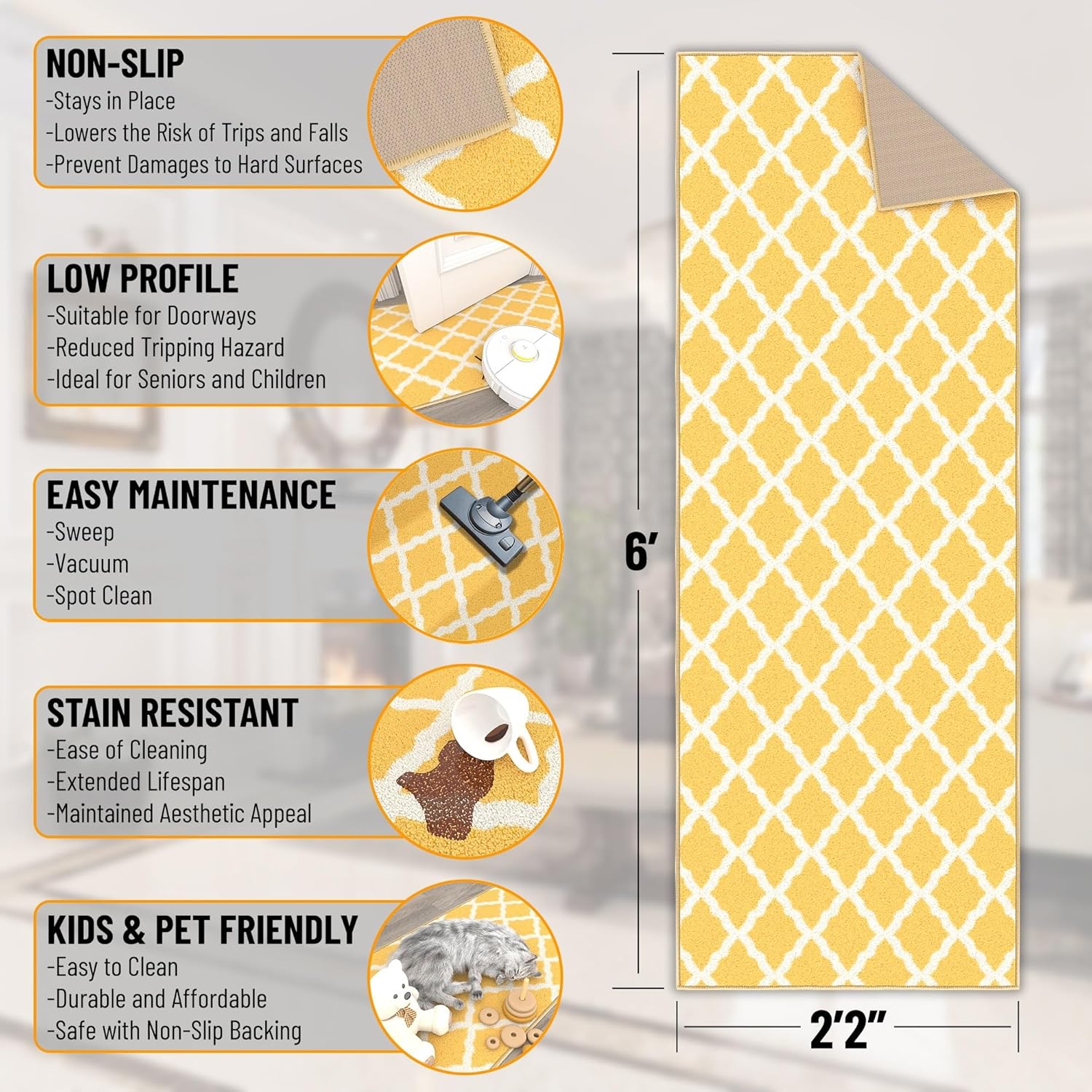 Ottomanson Hallway Runner Rug 2'2" x 6' Non Slip Trellis Area Rugs Easy to Clean Laundry Rug Runner Durable & Pet Friendly Floor Carpet Runners for Hallways Entryway Living Room Kitchen, Yellow