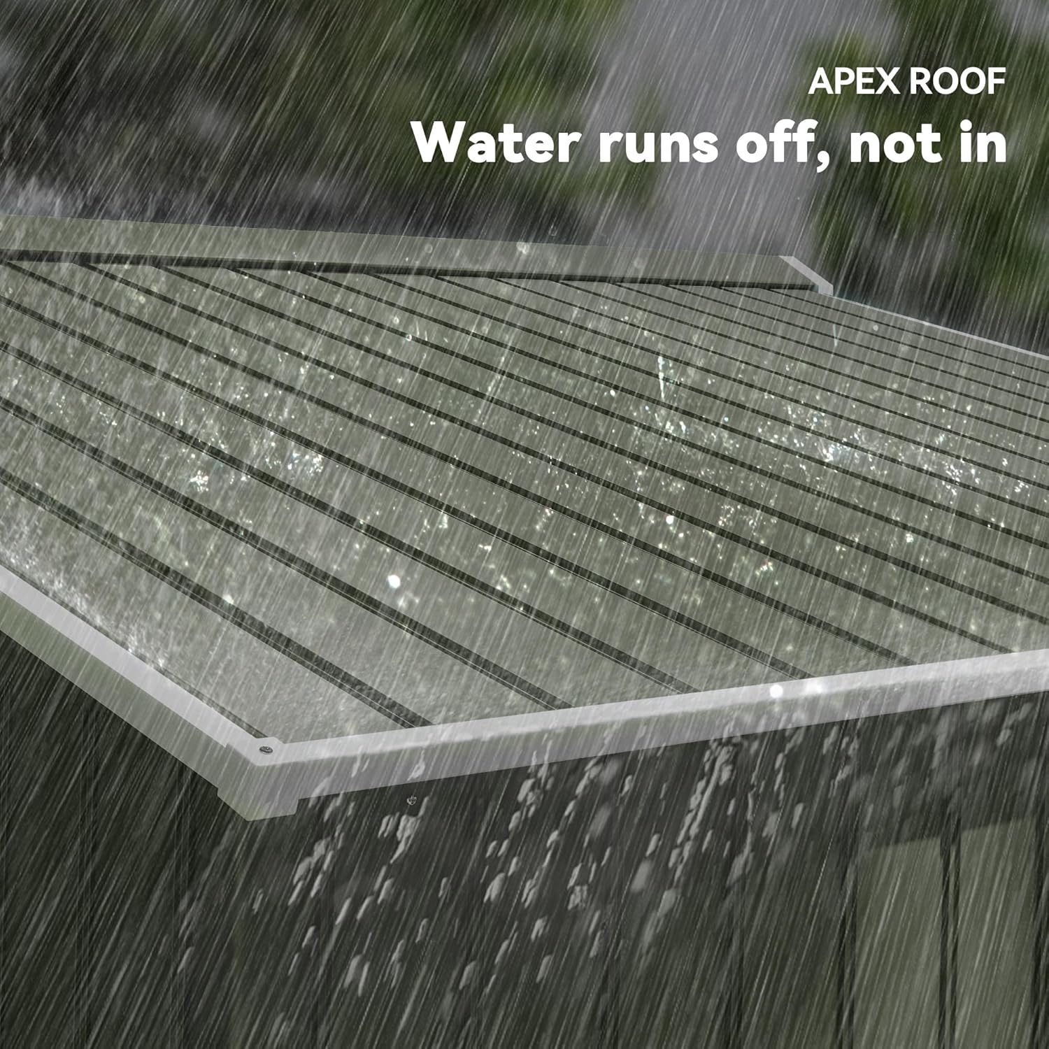 - Sloped Roof Shed: A sloped and striped roof keeps our backyard garden shed from holding on to too much weight during rainfall, preventing possible damage and keeping it intact during all seasons.