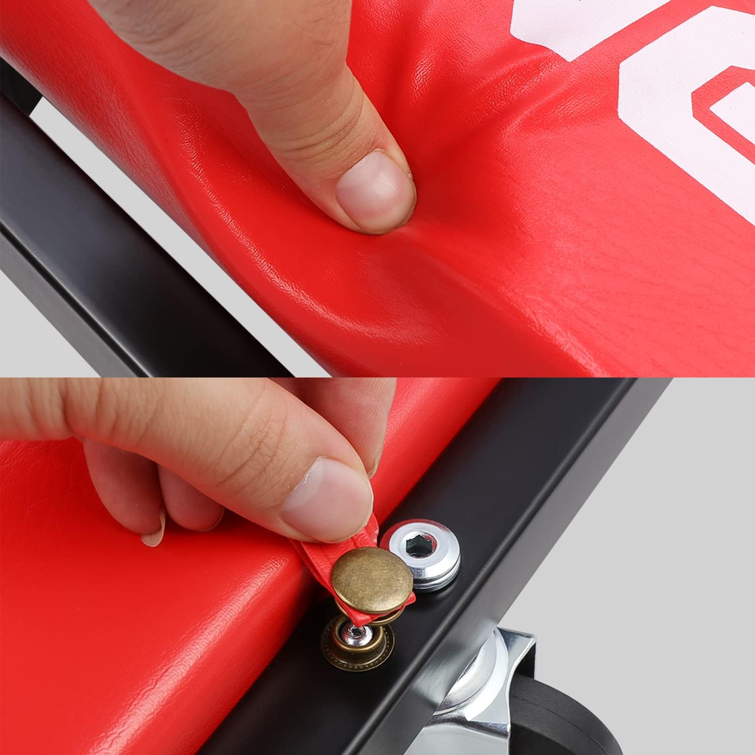 - ADVANCED DESIGN - This roller garage/shop creeper with thick padded seat cushion will provide stability and comfort on the job. Unique design allows creeper to transform from a standard rolling creeper into a seat in seconds, and the bottom can be used as a tray to place tool supplies.