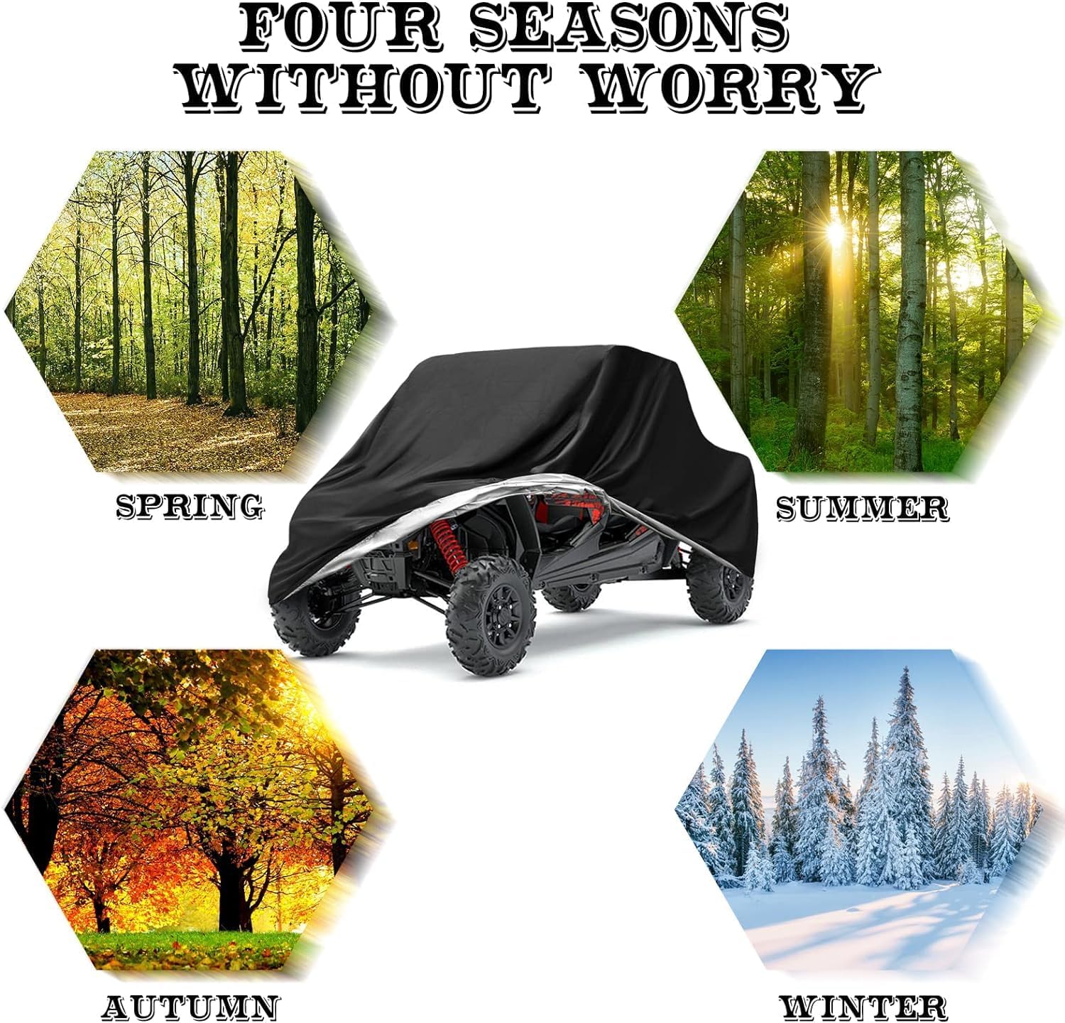 - [Check Your UTV Size]: Fit all 4-6 seater UTV's, 157.48"x 66.92"x 76.77". Our covers are compatible with polaris, rzr, ranger, canam, suzuki, honda, yamada, kawasaki etc. If you not sure your vehicle fit or not, please let our customer service help you
