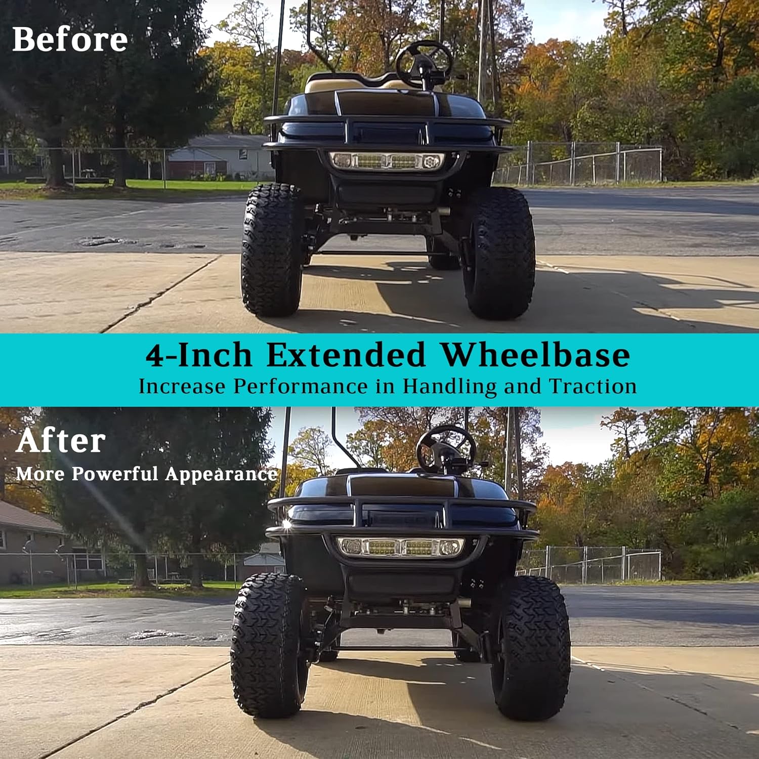 - 2 inch wheel spacers for EZGO, Club Car & Yamaha golf carts with 4×4 bolt pattern and 1/2-20" studs which are heat-treated and hardened for resisting corrosion and rust.