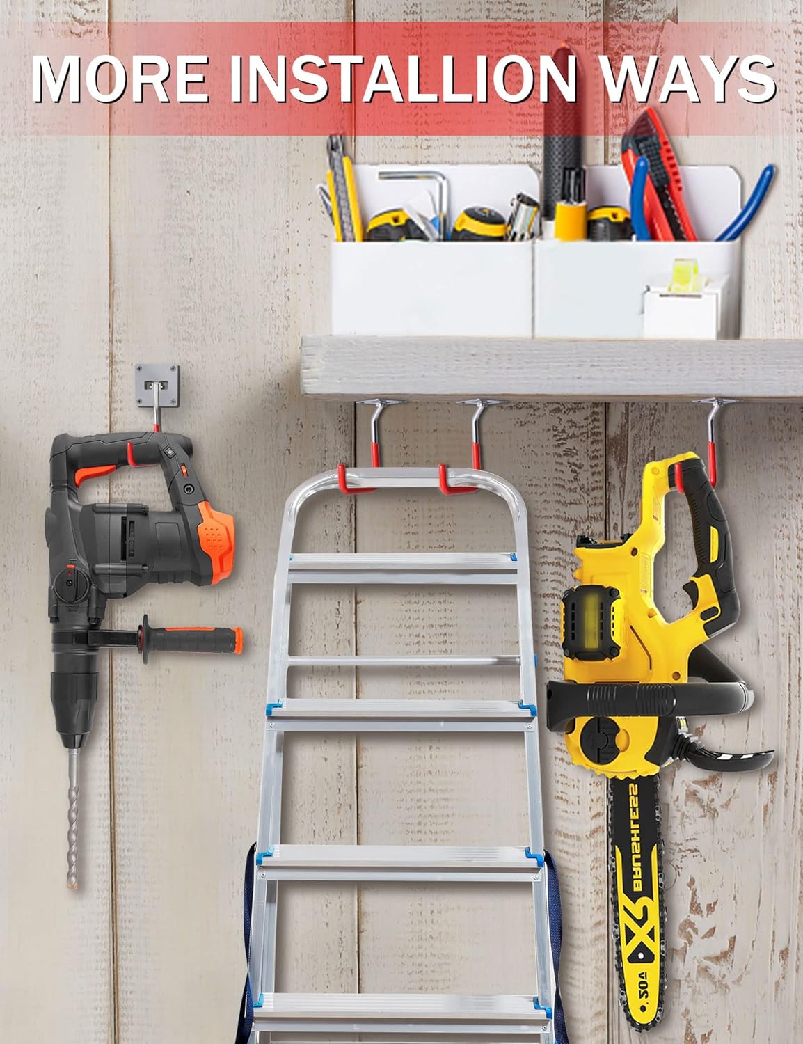 - IDEAL STORAGE CHOICE: These garage hooks are great for wall storage and organized chainsaws or Heavy-Duty tools.Perfect wall hanger organizer hook for organizing utility rooms, sheds, basements, or any workspace. You can use these storage organizers anywhere on your wall.