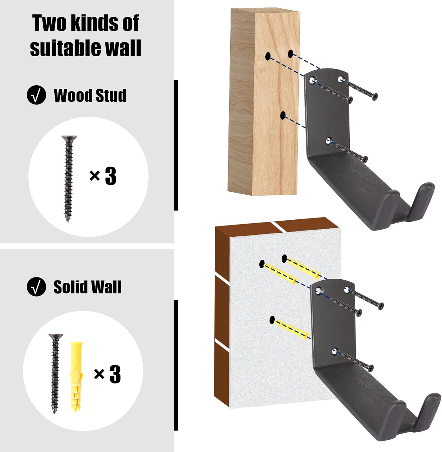- 【BROAD APPLICATION】With high quality stainless steel mounting screws, nylon plug and anchor bolts, there two types of walls are suitable to our products, wood stud & solid wall. Please note: do not put wall bike rack on drywall or plasterboard unless there is the wooden stud behind.