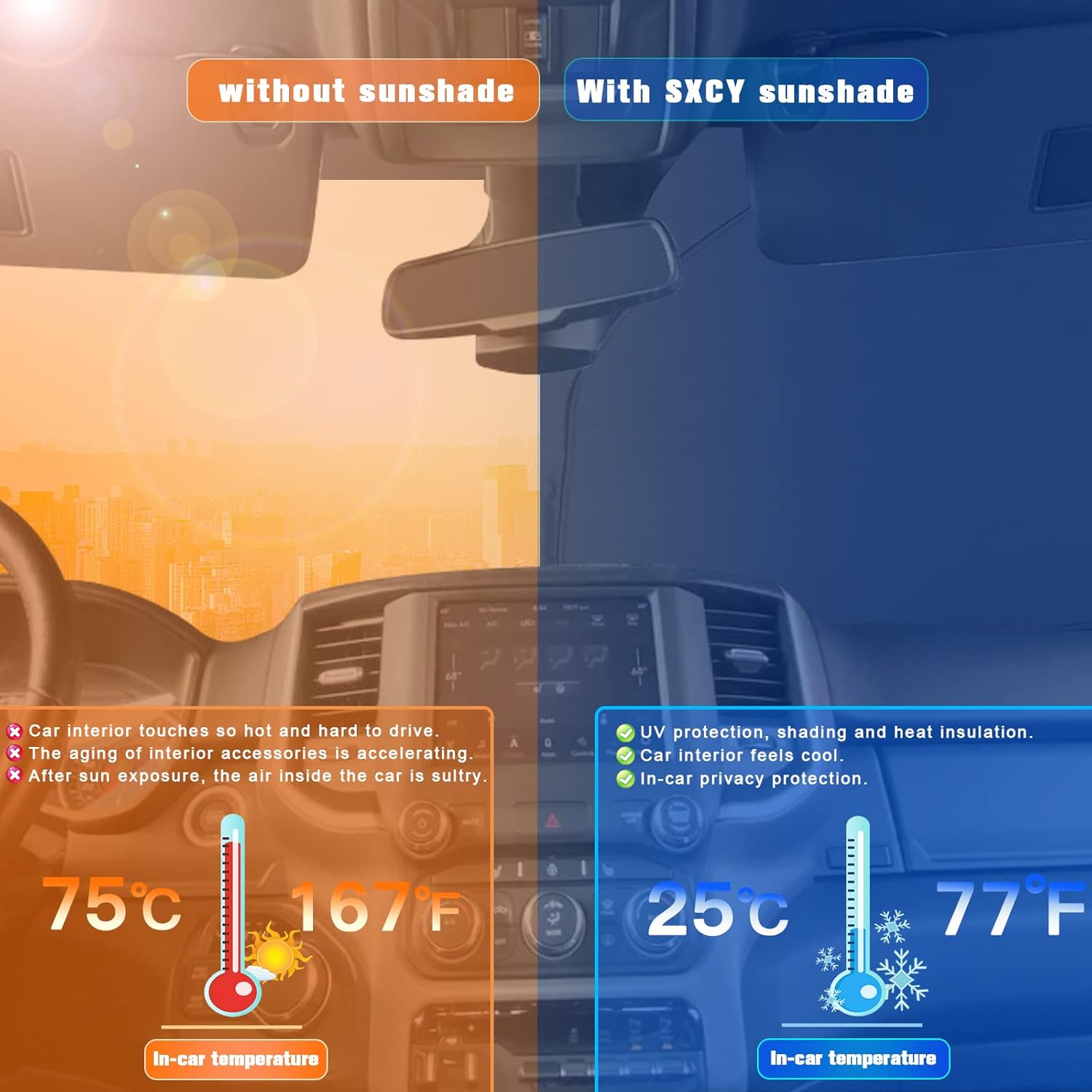 SXCY Sunshade for 2019-2024 Ram 1500 Windshield Sunshade - Foldable UV Rays Sun Protector