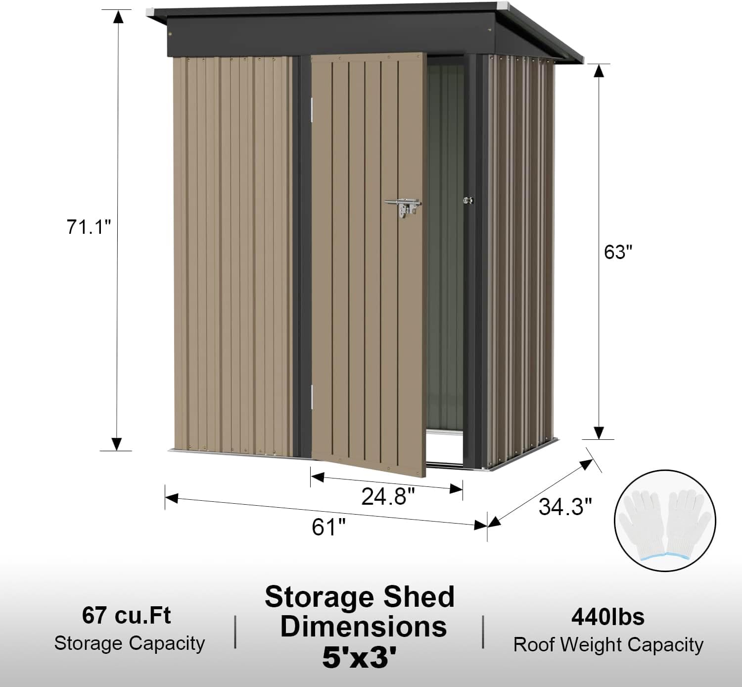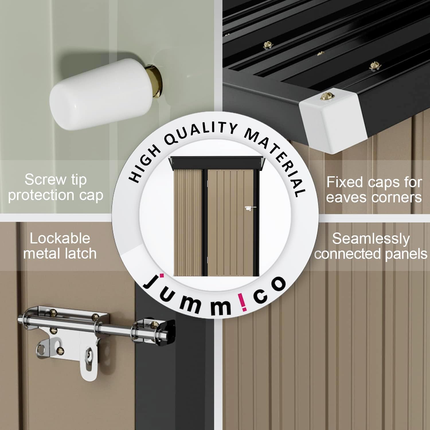 JUMMICO Metal Outdoor Storage Shed 5 x 3 FT Metal Shed with Lockable Door,Waterproof Garden Tool Shed Storage House for Backyard Patio Lawn, Brown