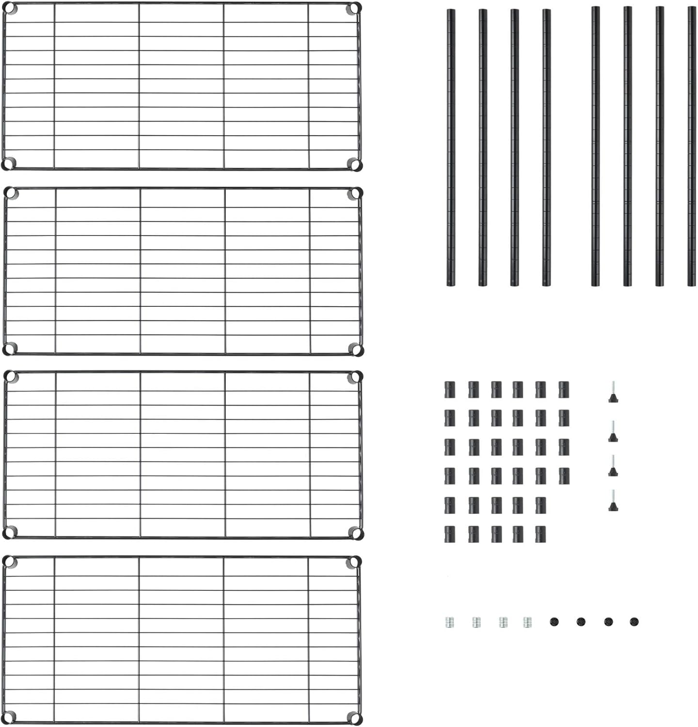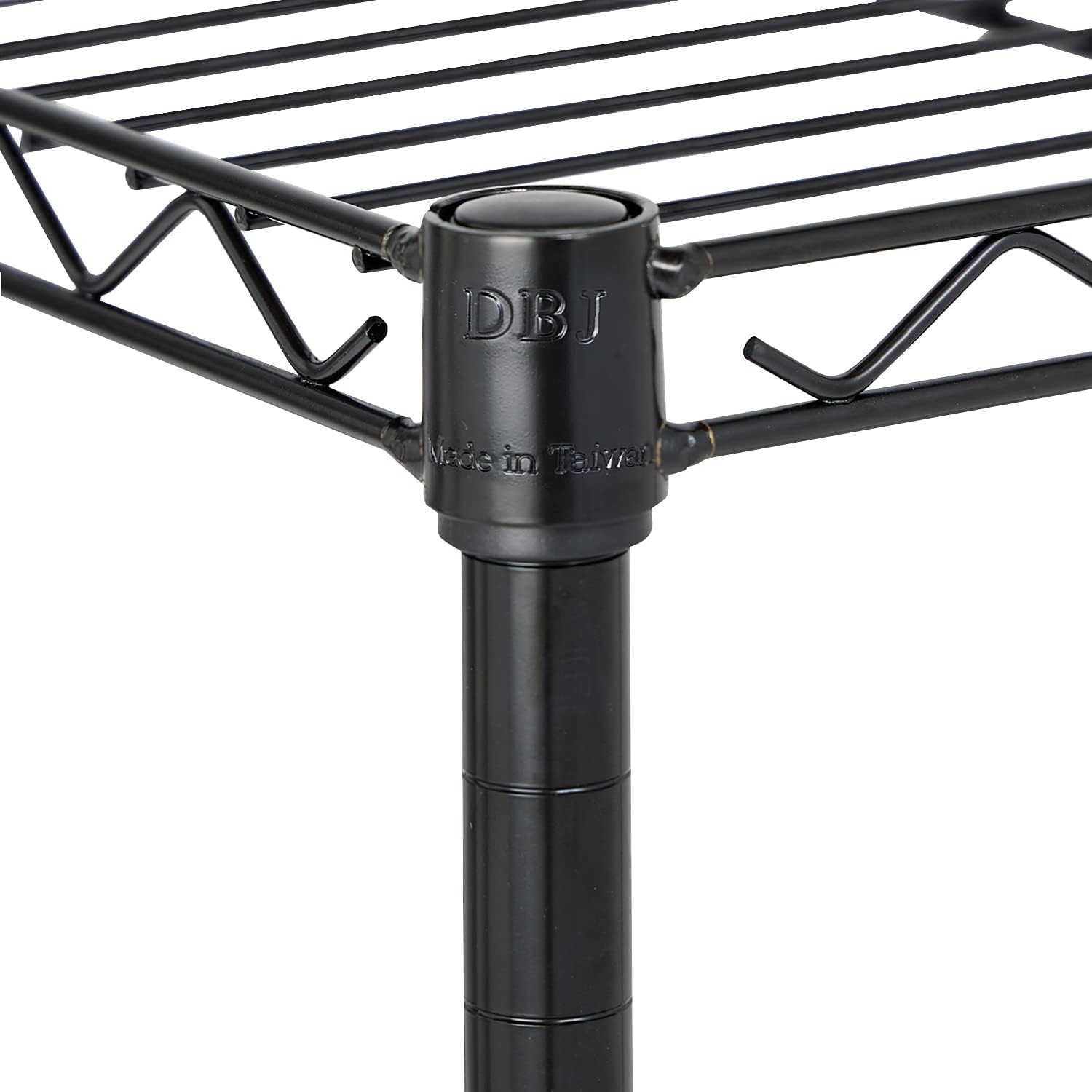- Our 4 tier black finish organization wire shelving rack has 4 leveling feet for great stability and industrial shelving.