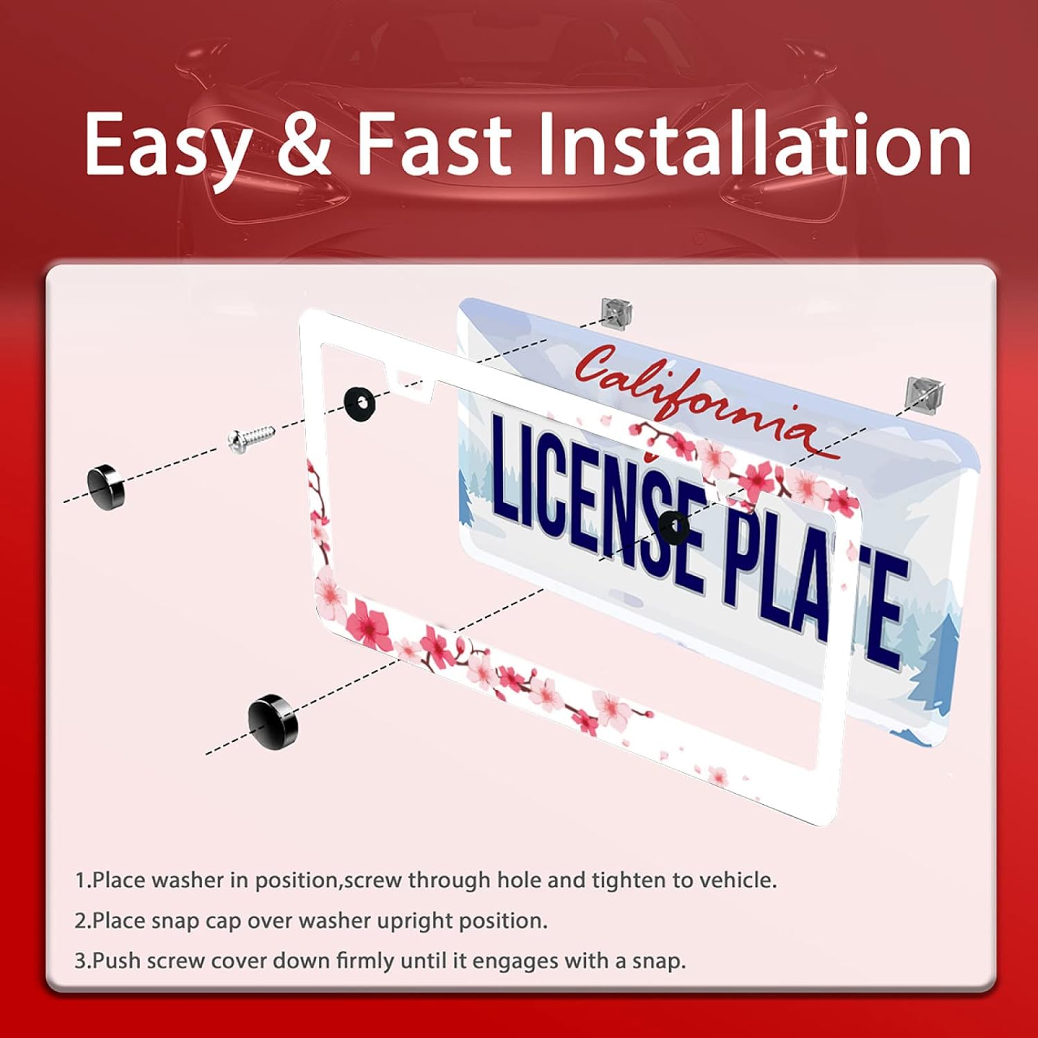 - 【Product Accessories】Our License Plate Frame All Accessories Needed are Included (2 Screw Caps, 2 Screws, 2 Washers).Quick and Simple Installation with Easy to Follow Instructions.Easy to clean, just wipe with a damp cloth