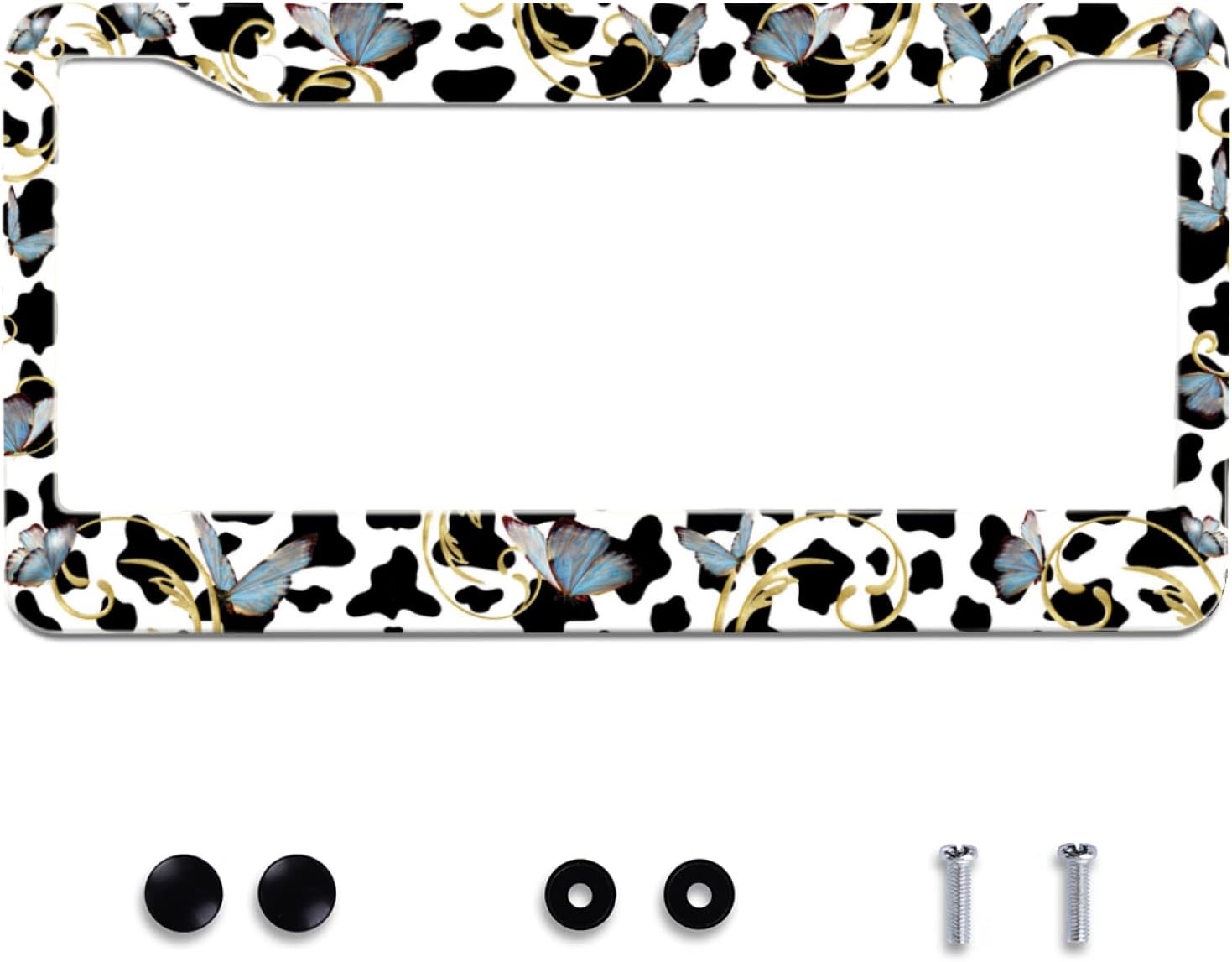 Personalise Cows and Butterfly License Plate Frames Cute Leopard License Plate Frame Car Universal Stainless Steel Accessories Cars Decor 2 Holes Screws Fits Standard US Vehicles Size 12.2 x 6 Inches