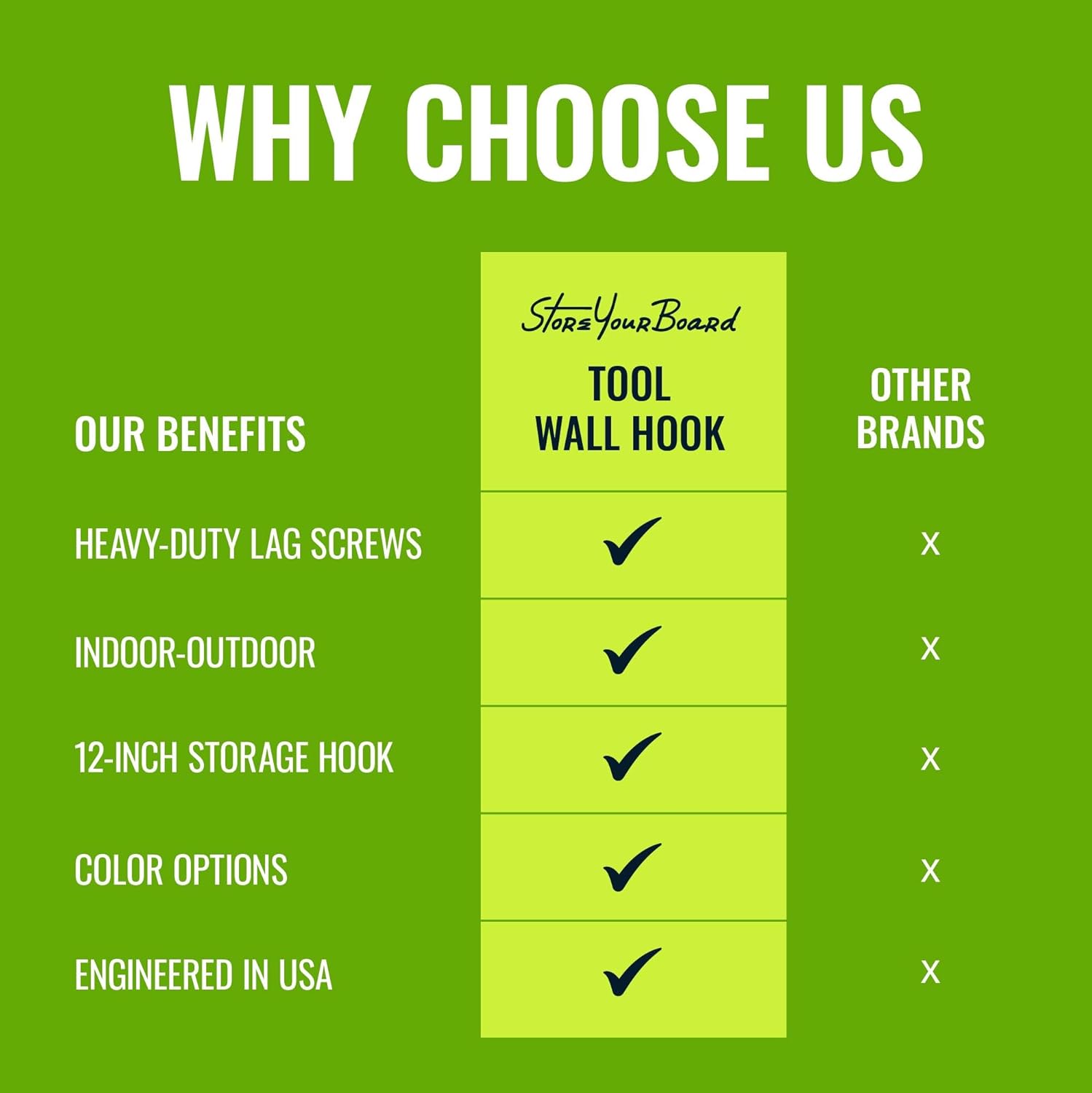 StoreYourBoard Garage Garden Tool Wall Mount Hook, Garage Organization and Storage, Shovel & Rake Hangers Yard Tool Rack, Industrial Steel Holds 50 Pounds