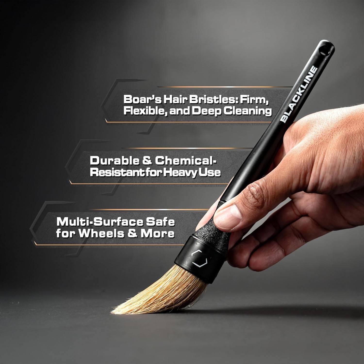 - Crafted For Perfection: The Blackline detailing brush set is constructed with premium ultra-soft chemical-resistant handles and so bristles. The Blackline detailing brushes can withstand highly acidic and alkaline chemicals that wear away normal brushes.