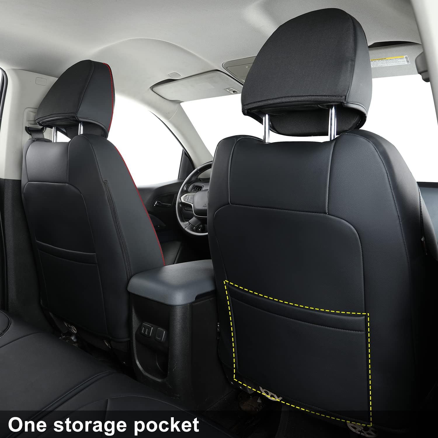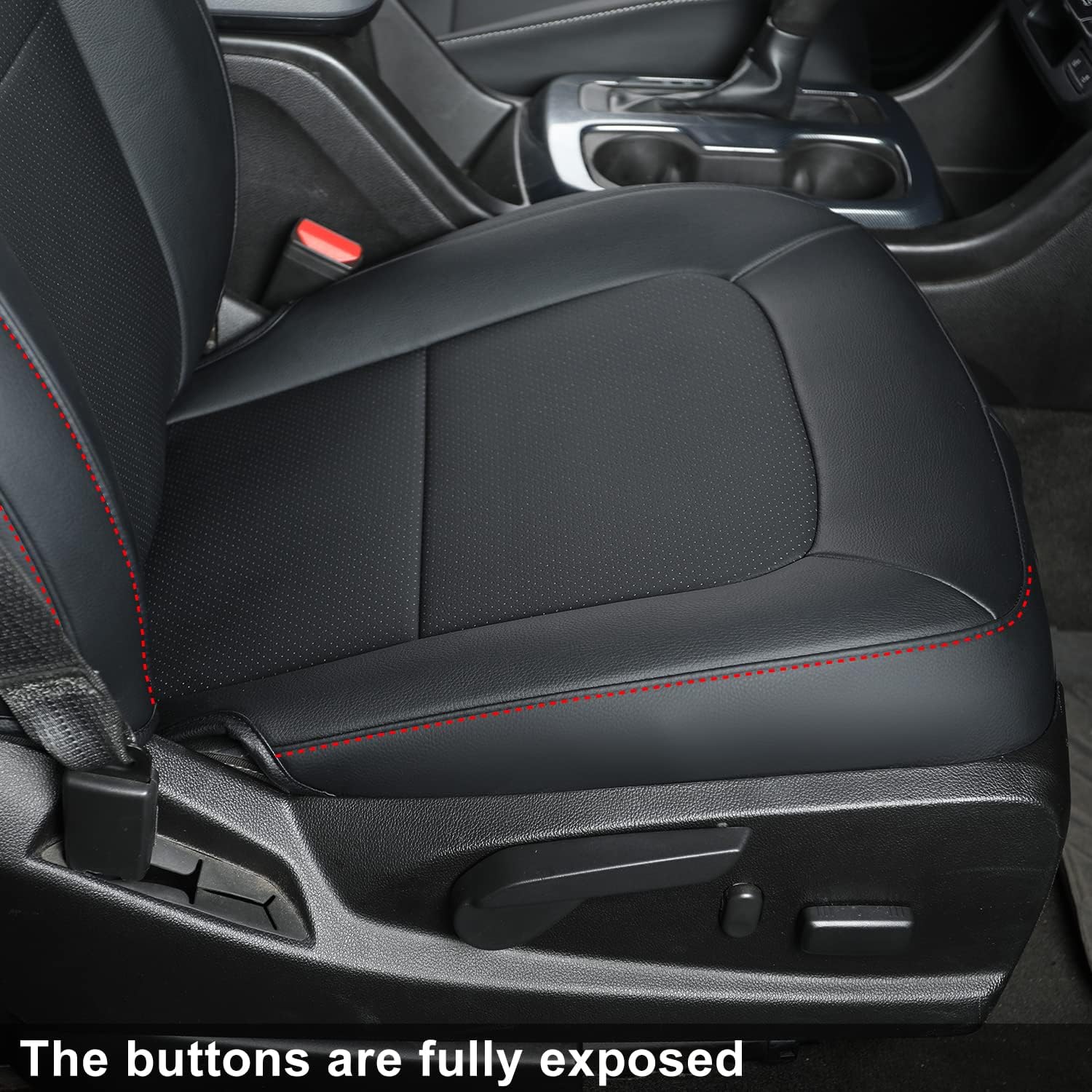LUCKYMAN CLUB Chevy Colorado Seat Covers, fit for 2015-2022 Colorado Crew Cab Z71 LT ZR2 Work Truck with Faux Leather (Black&Red)