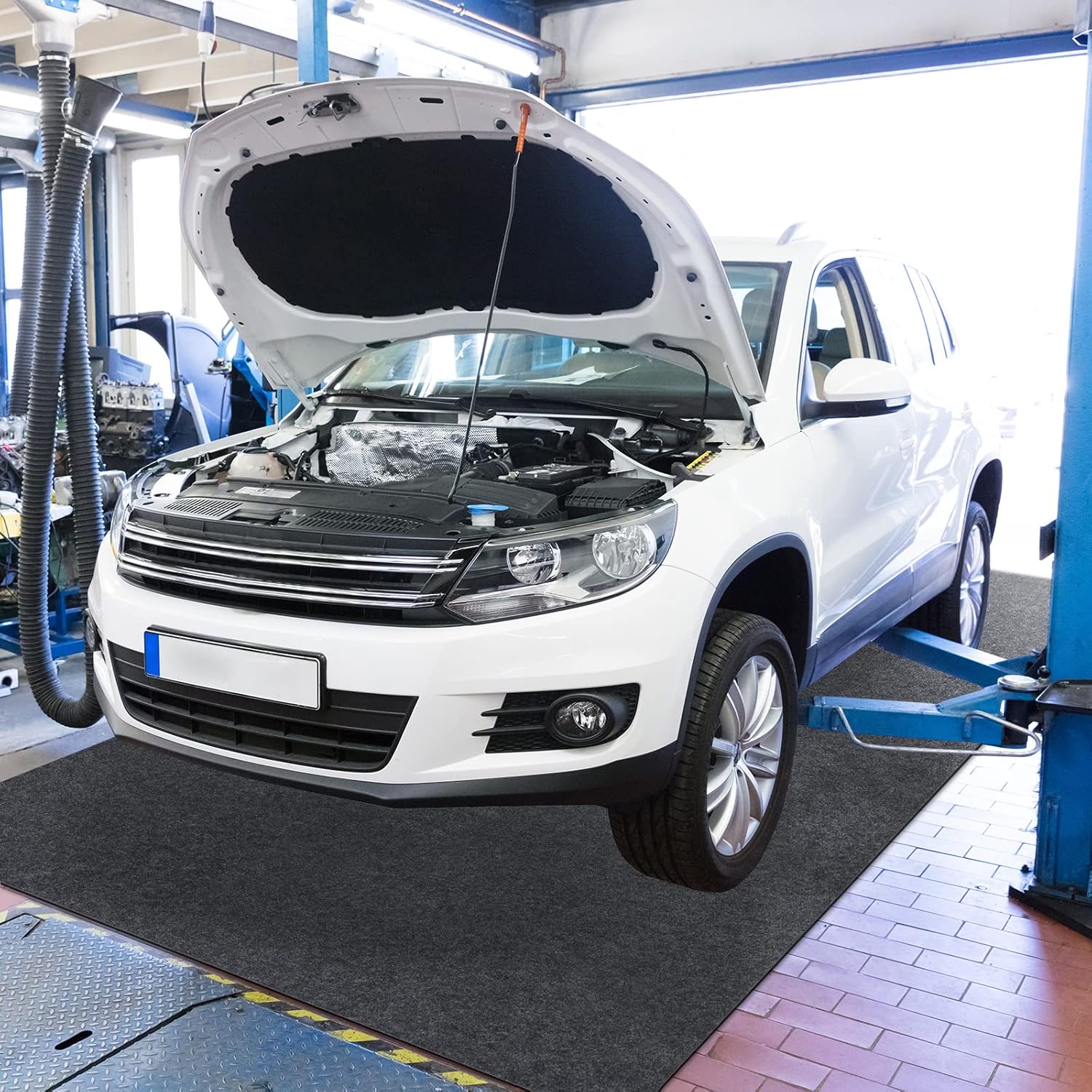 - Reusable and Easy to Clean: The garage mat is made of compact and thick felt structure and this premium material is extremely reusable, excellent anti-wear, anti-tear for a long-time use. You can simply flush with water gun, or scrub with soap or detergent if needed, air dry. Do not blench.