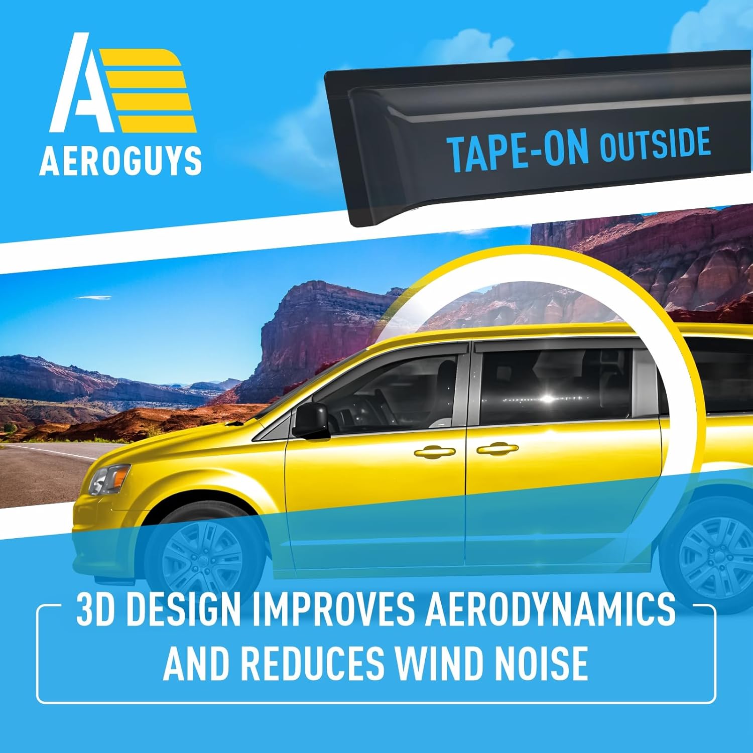 - No Tools Needed, Quick and Easy Assembly β These rain guards are very easy to fit. TAPE-ON INSTALLATION provides perfect fit for your car. Just slip it onto your carβs window and your job is done within minutes. There is no drilling or no tools required. Be sure that AEROGUYS window deflectors are water resistant, sun protective and will not bend, break or crack regardless of the weather conditions.