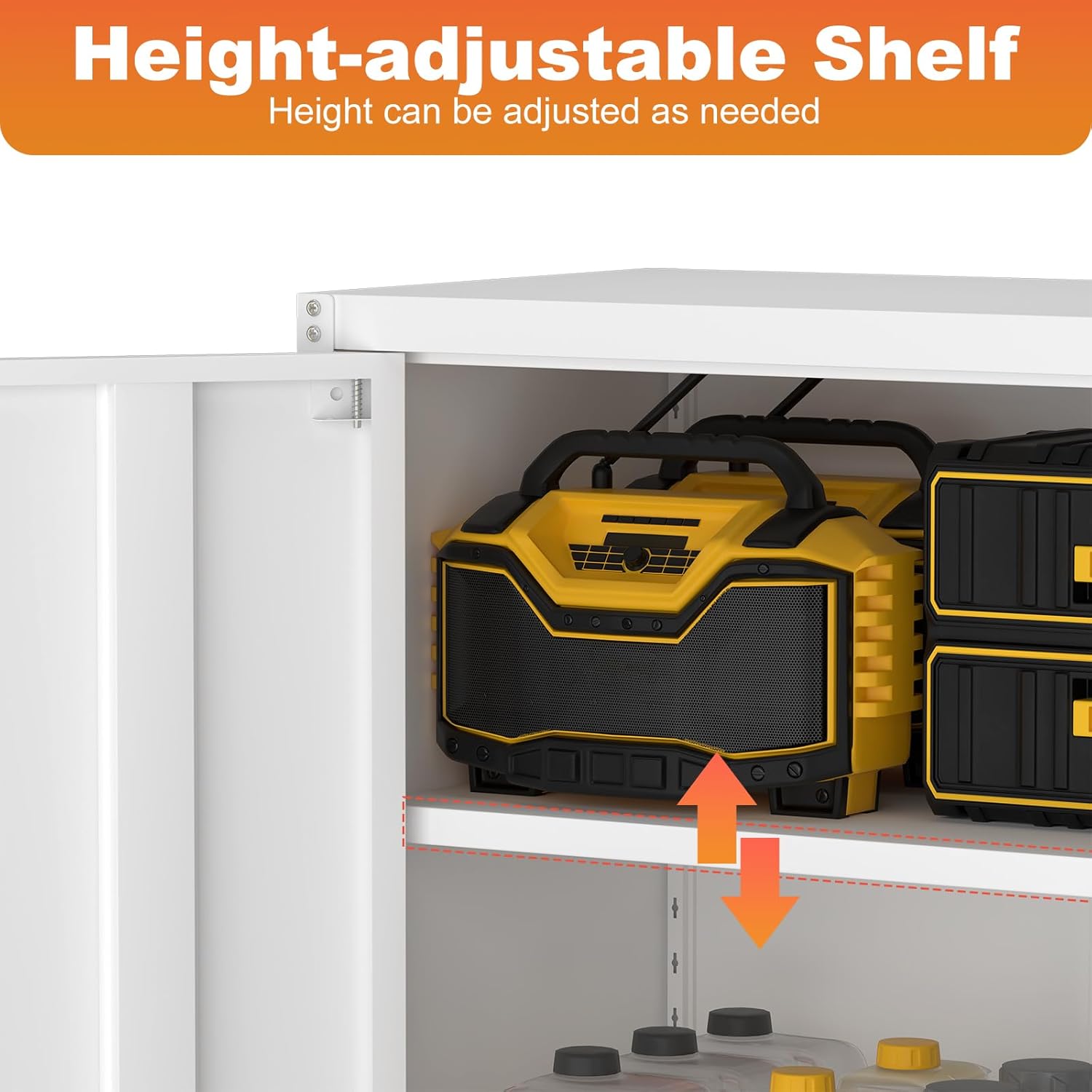 - STORAGE&DESIGN: This metal wall cabinet with 1 adjustable shelves can better meet your storage needs at home. With the classic looking,but more modern functions,the locking storage cabinet adjustable shelves provide more flexible space,which can maximize the utilization of the space.