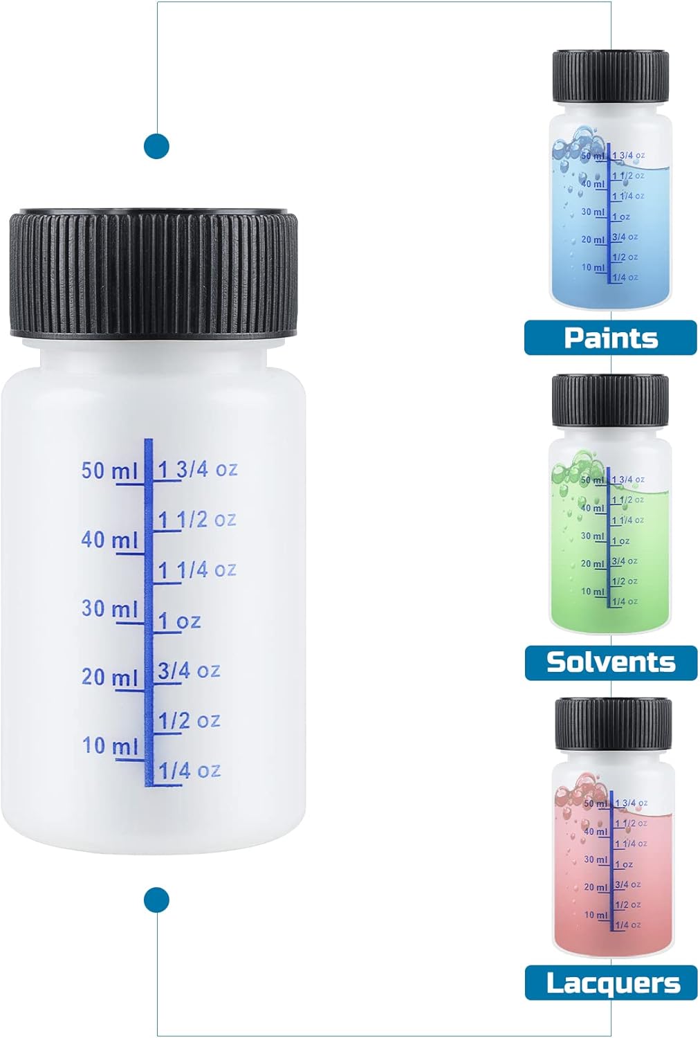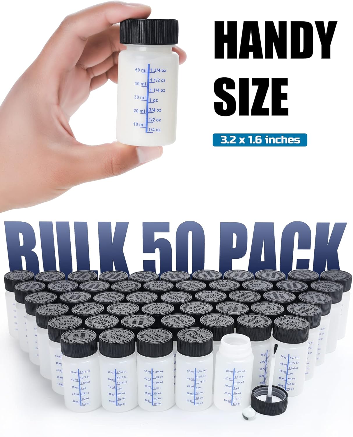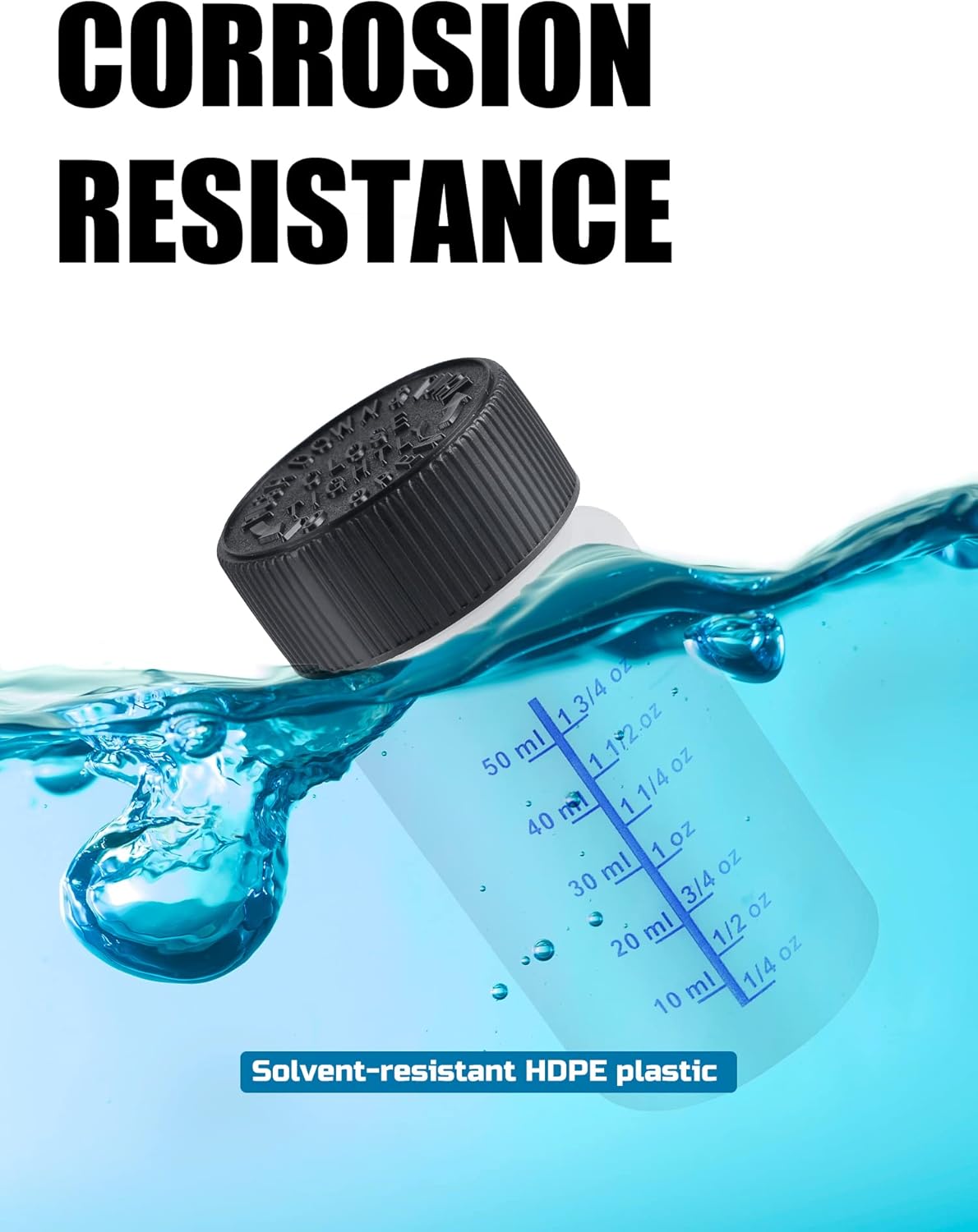 - Durable Material: The set contains 50 bottles made of solvent-resistant HDPE plastic material, which is highly resistant to corrosion. The threaded ring layer inside the cap is made of flexible plastic, which is well sealed and will not loosen