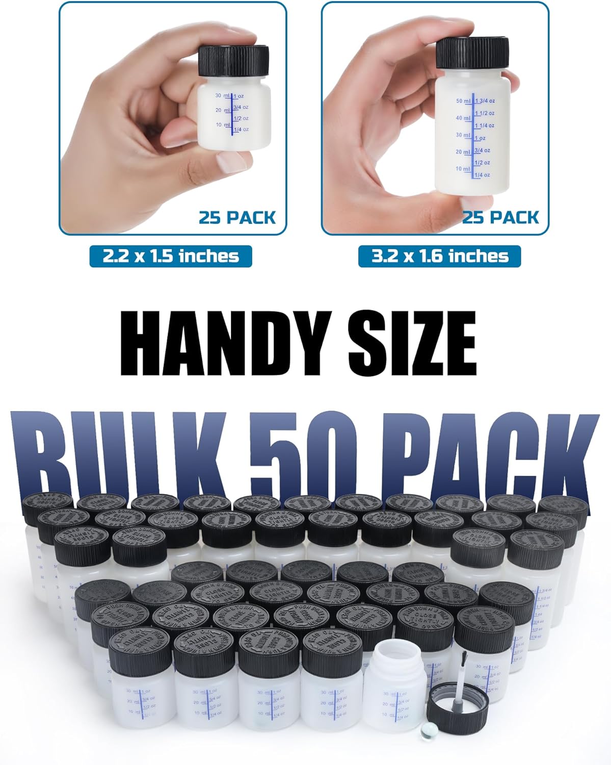 Lichamp Touch Up Paint Container, 25pc 1 oz and 25pc 2 oz Paint Touch Up Bottles with Brush, 1 Ounce (30ml) and 2 Ounce (60ml) A350TP