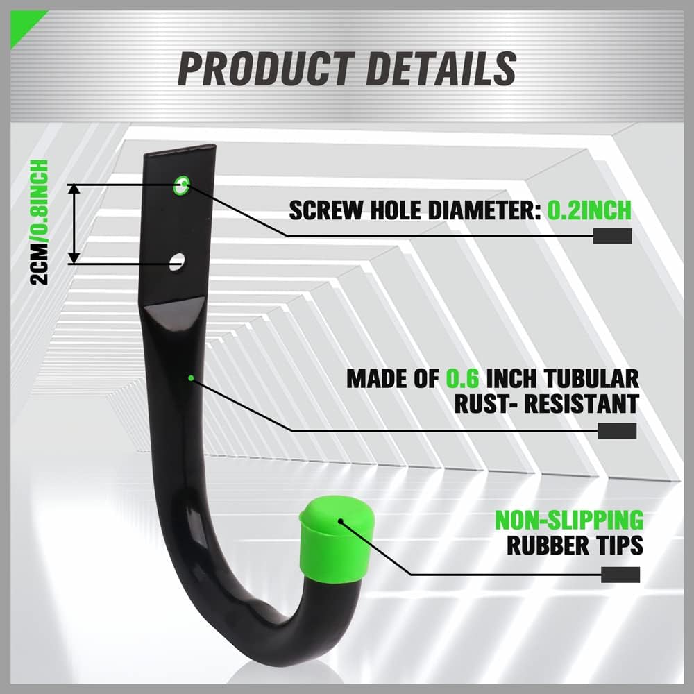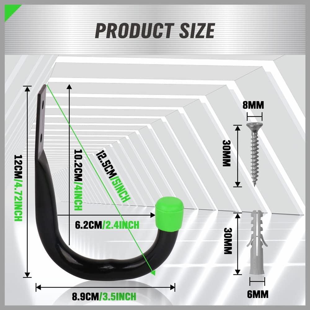 - 6 pack garage storage hooks with 12pcs screws and anchors(30mm), hook size: 4.7in x 3.5in(L x W)
