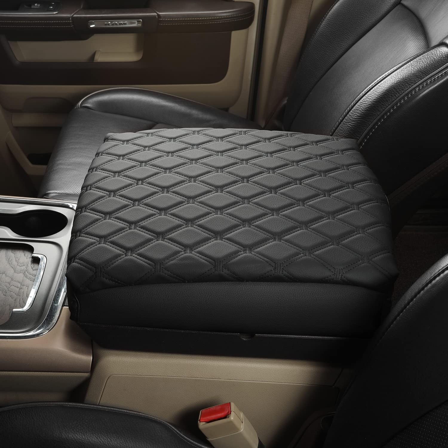 - 【NICE INTERIOR AND FULL PROTECTION】With diamond embroidery, copyright pattern, this elegant center armrest cover will totally blend the interior of RAM 1500 2500 3500 2009-2018. Both of the sides are wrapped, this center console cover will prevent your armrest box from spills, scuffs, dirt, pet scratches.