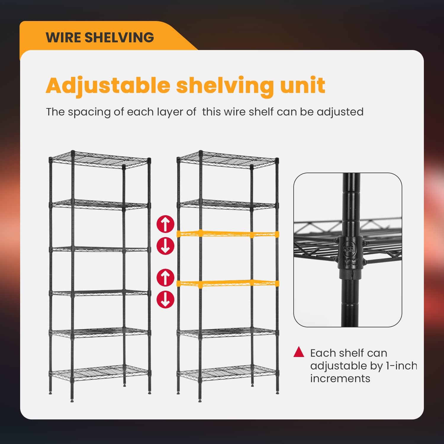 BestOffice Adjustable Wire Shelving Storage Shelves Heavy Duty Shelving Unit for Small Places Kitchen Garage (Black, 13 D x 23 W x 59 H)